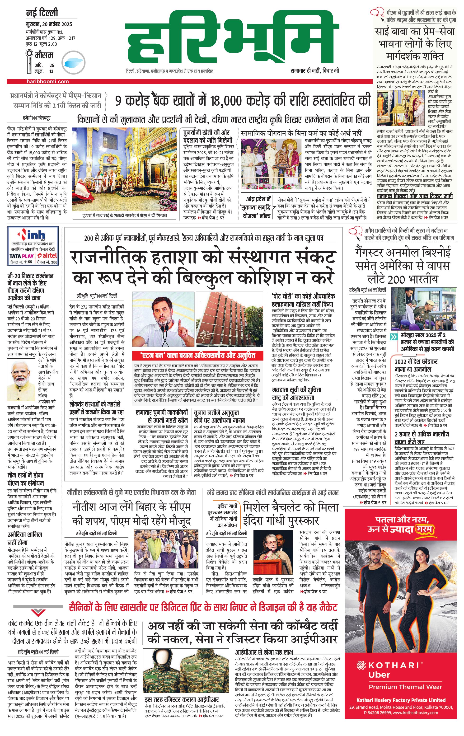 दिल्ली मुख्य संस्करण - 20 Nov 2025 - - Page 1