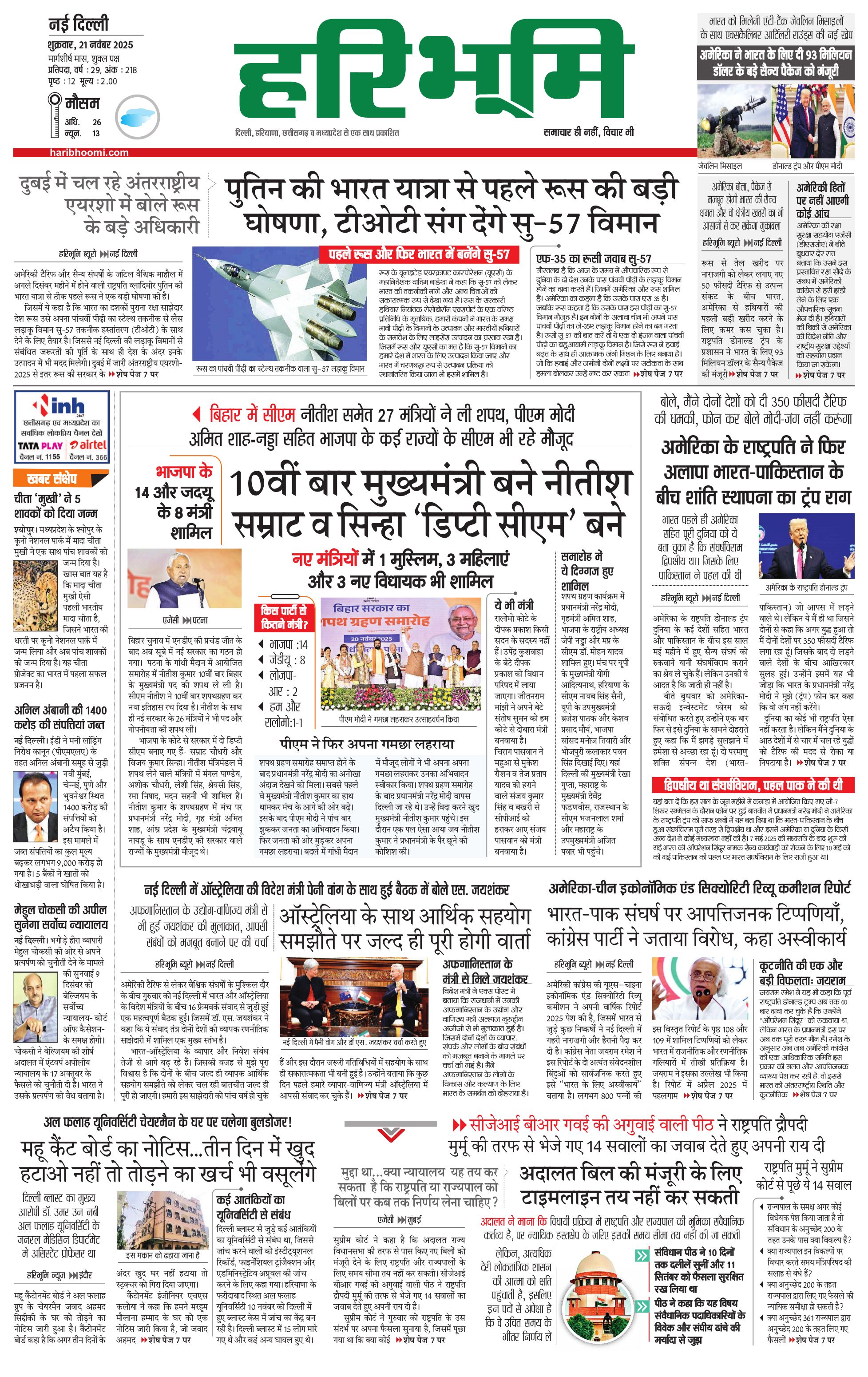 दिल्ली मुख्य संस्करण - 21 Nov 2025 - - Page 1