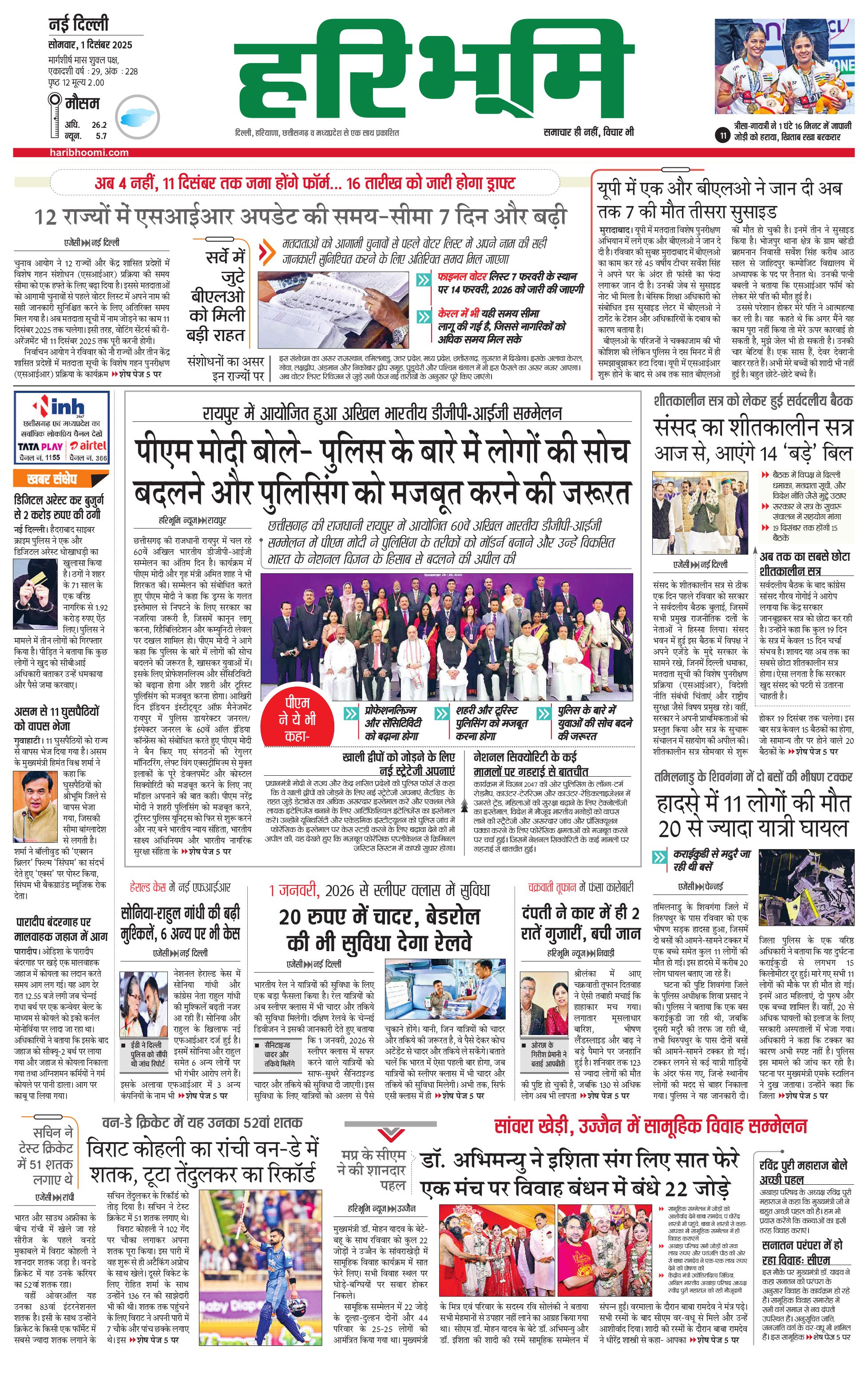 दिल्ली मुख्य संस्करण - 01 Dec 2025 - - Page 1