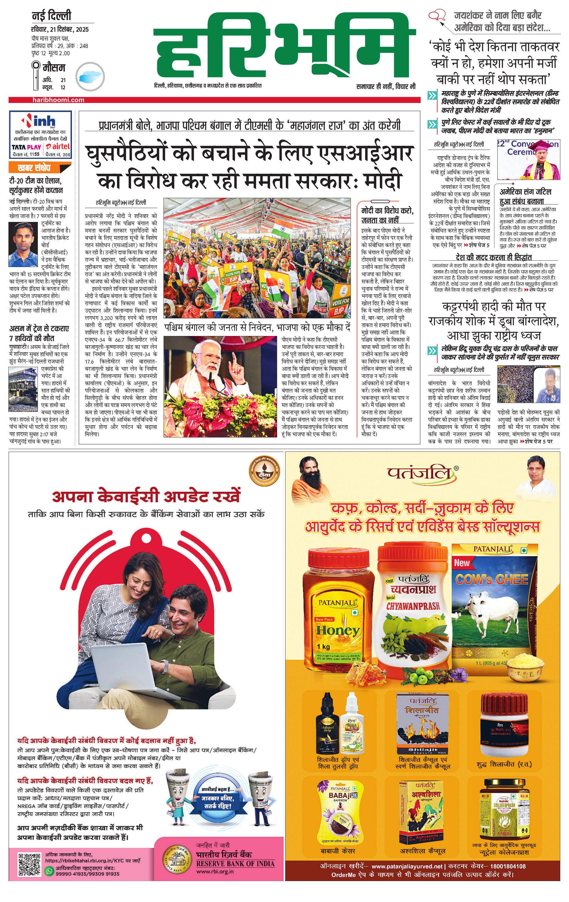 दिल्ली मुख्य संस्करण - 21 Dec 2025 - - Page 1