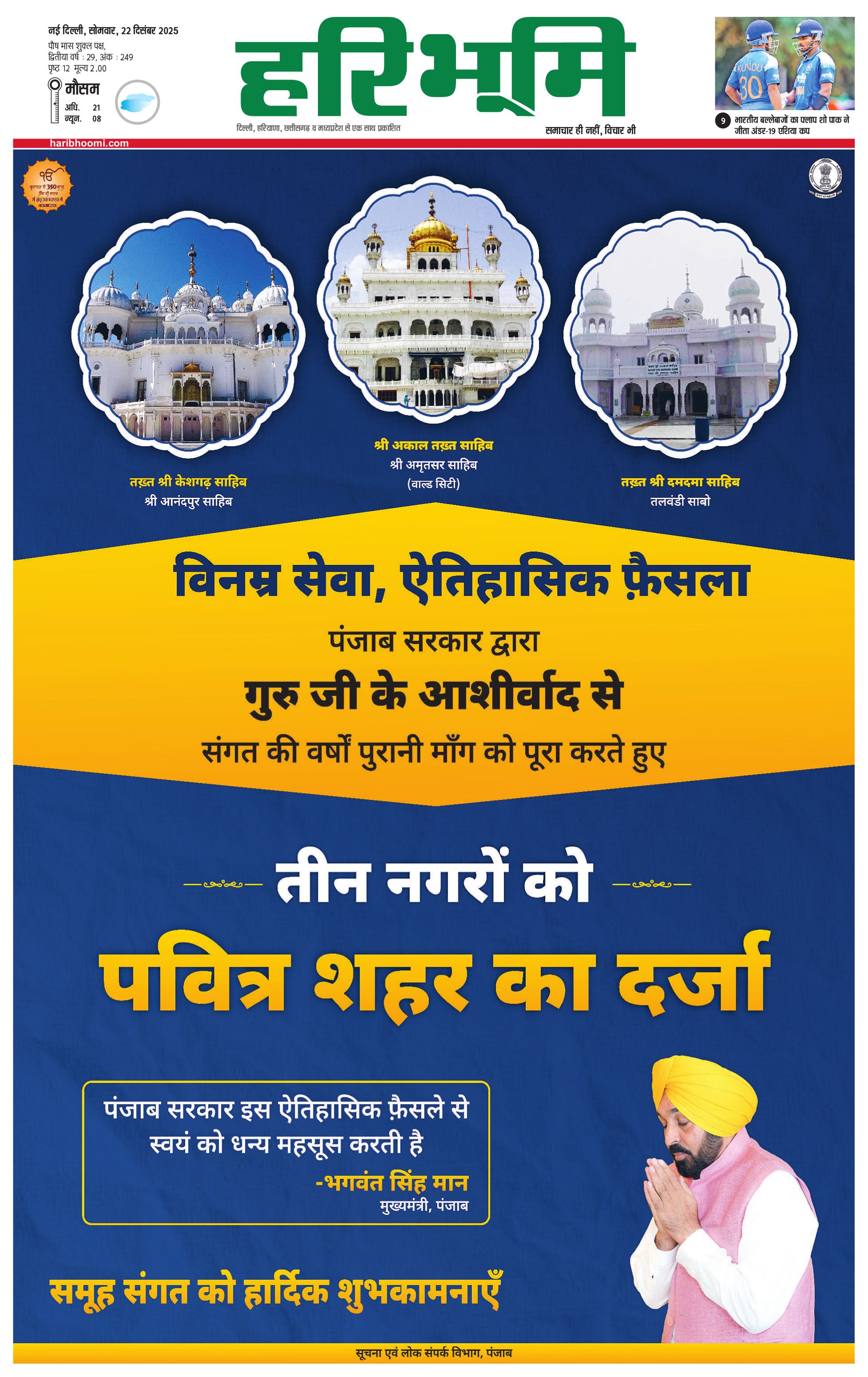 दिल्ली मुख्य संस्करण - 22 Dec 2025 - - Page 1