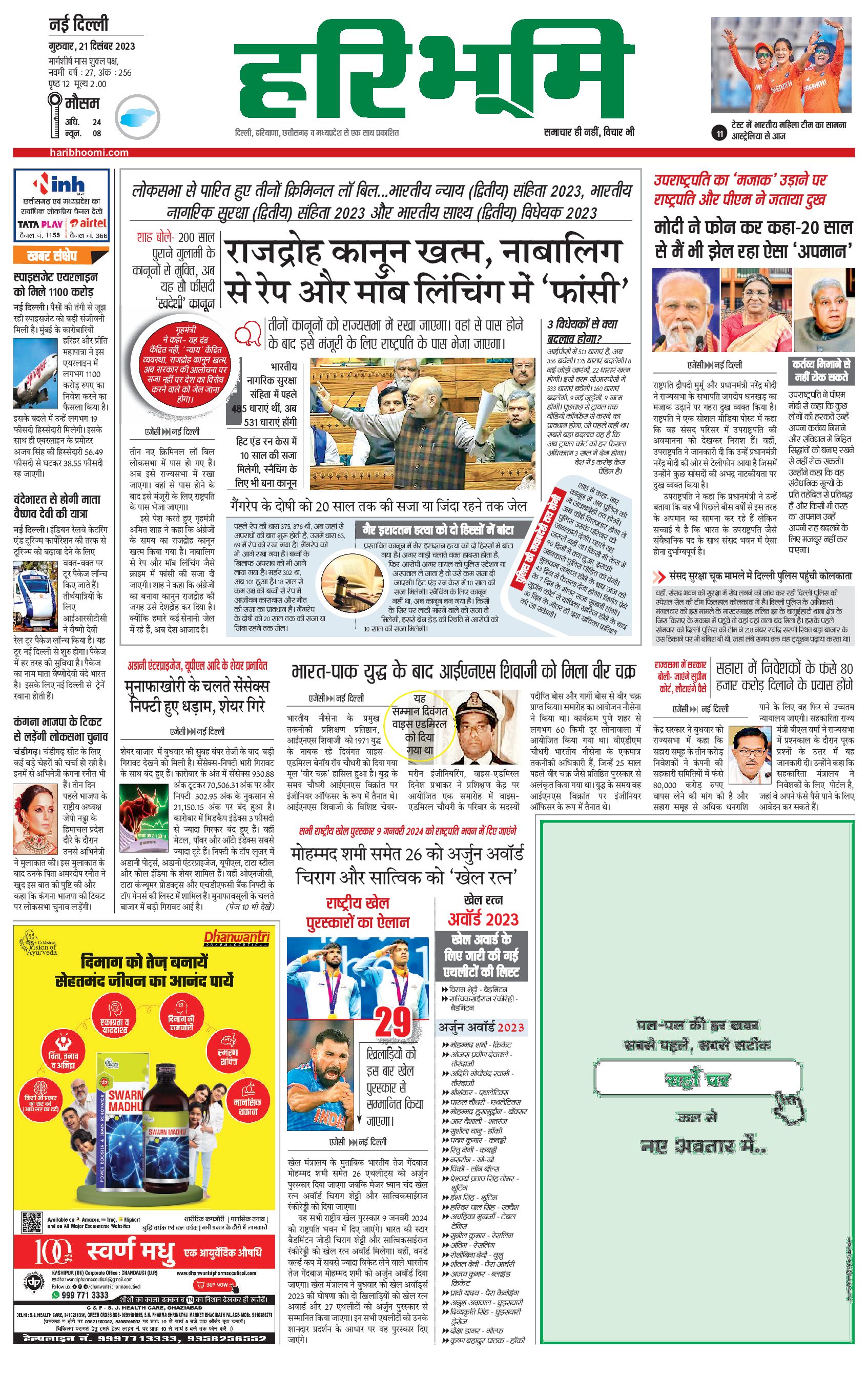 दिल्ली मुख्य संस्करण - 21 Dec 2023 - - Page 1
