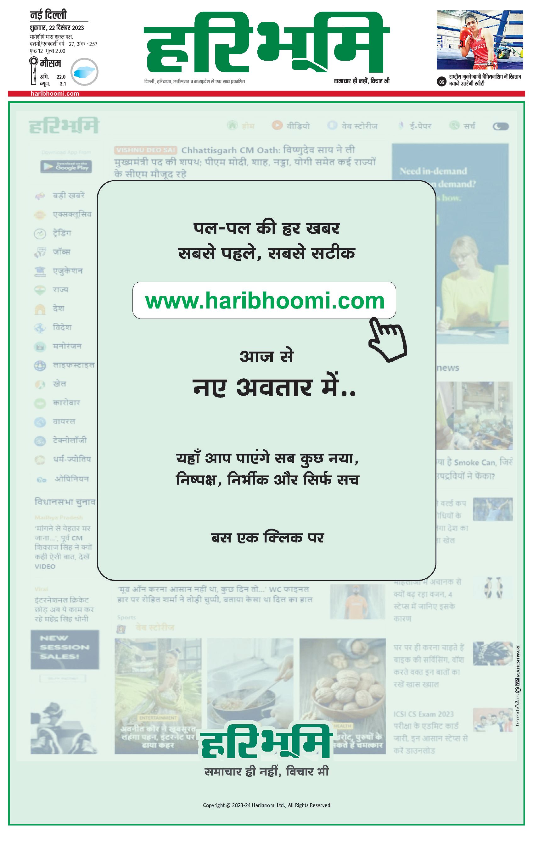 दिल्ली मुख्य संस्करण - 22 Dec 2023 - - Page 1