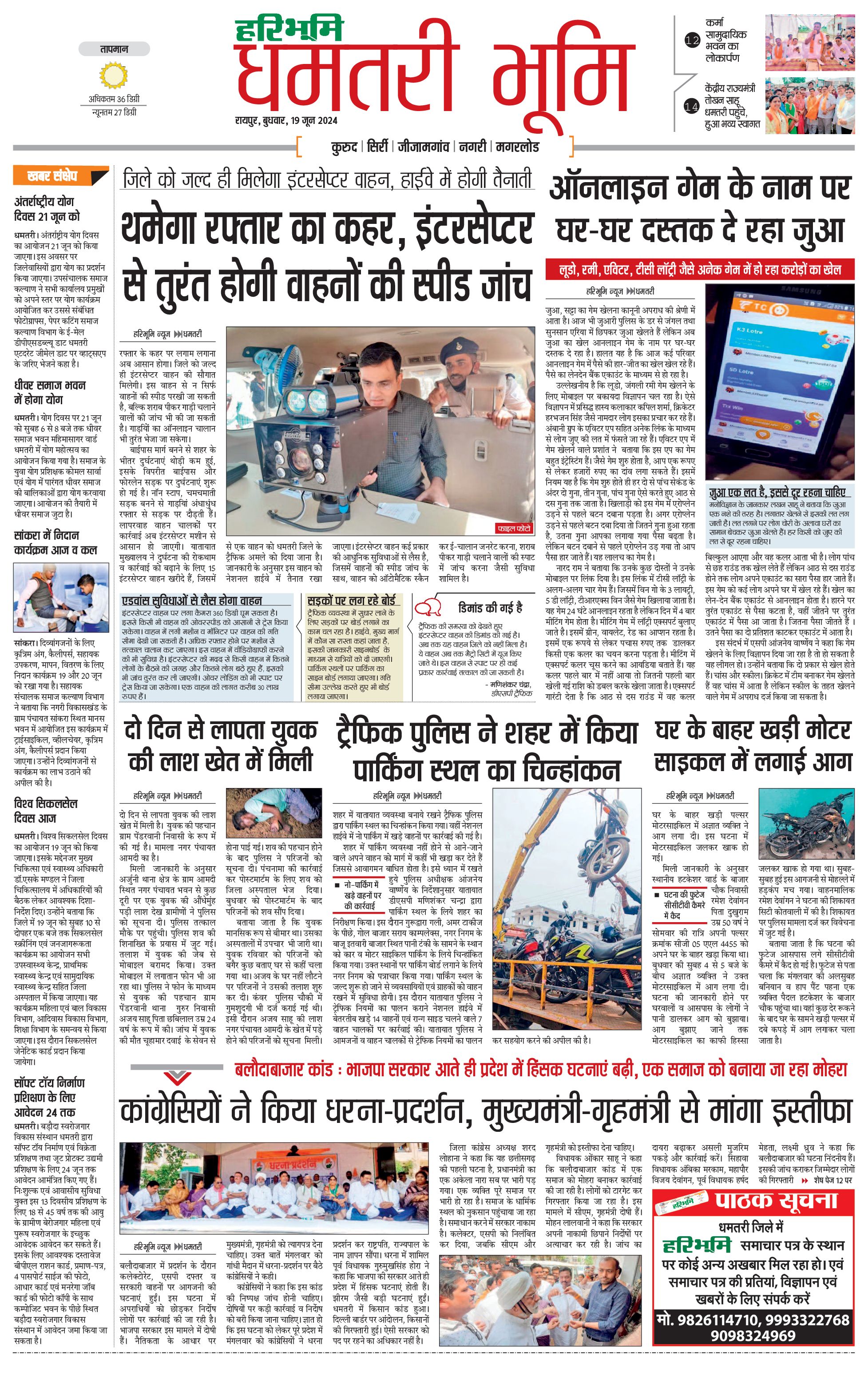 धमतरी भूमि - 19 Jun 2024 - - Page 1