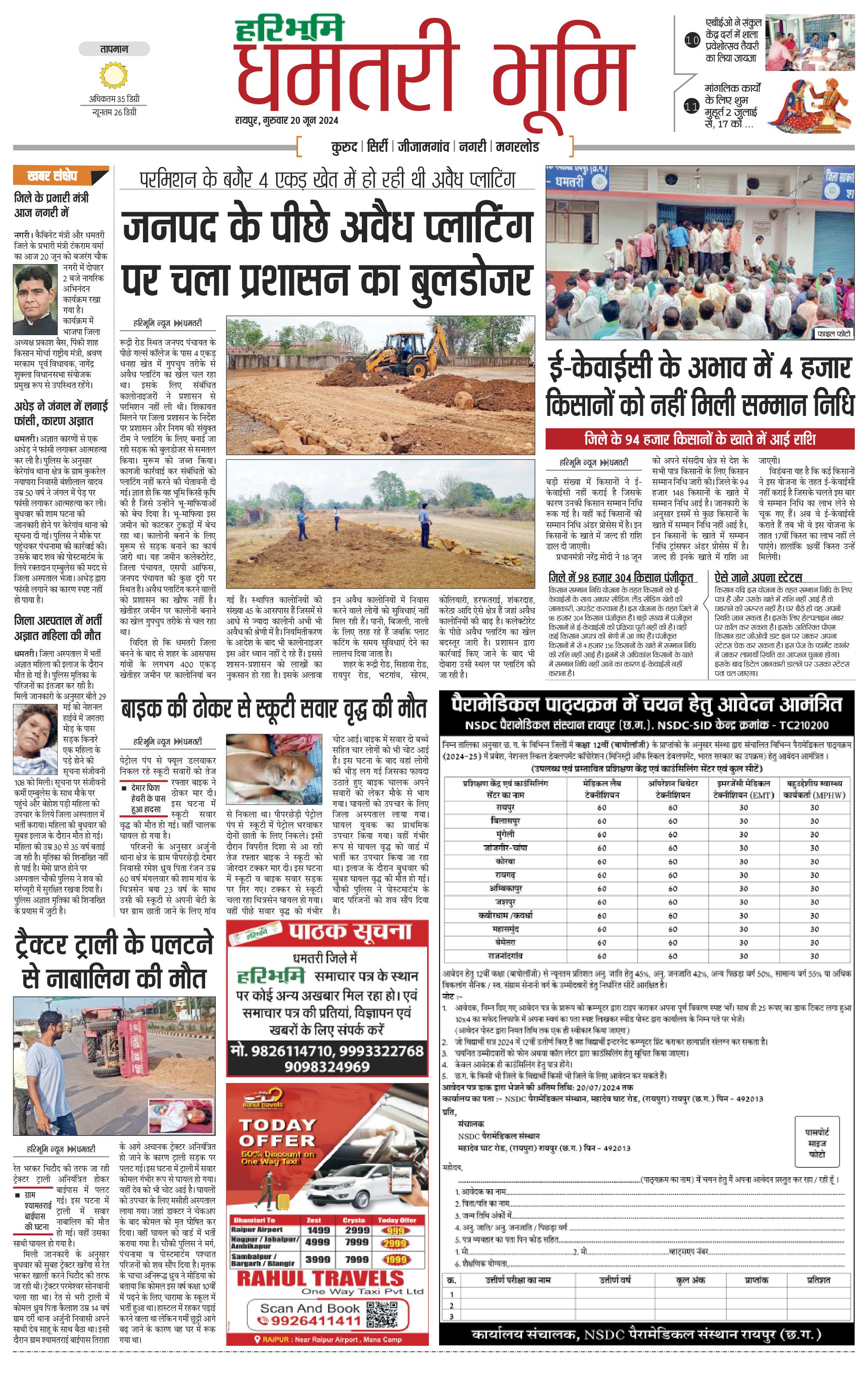 धमतरी भूमि - 20 Jun 2024 - - Page 1