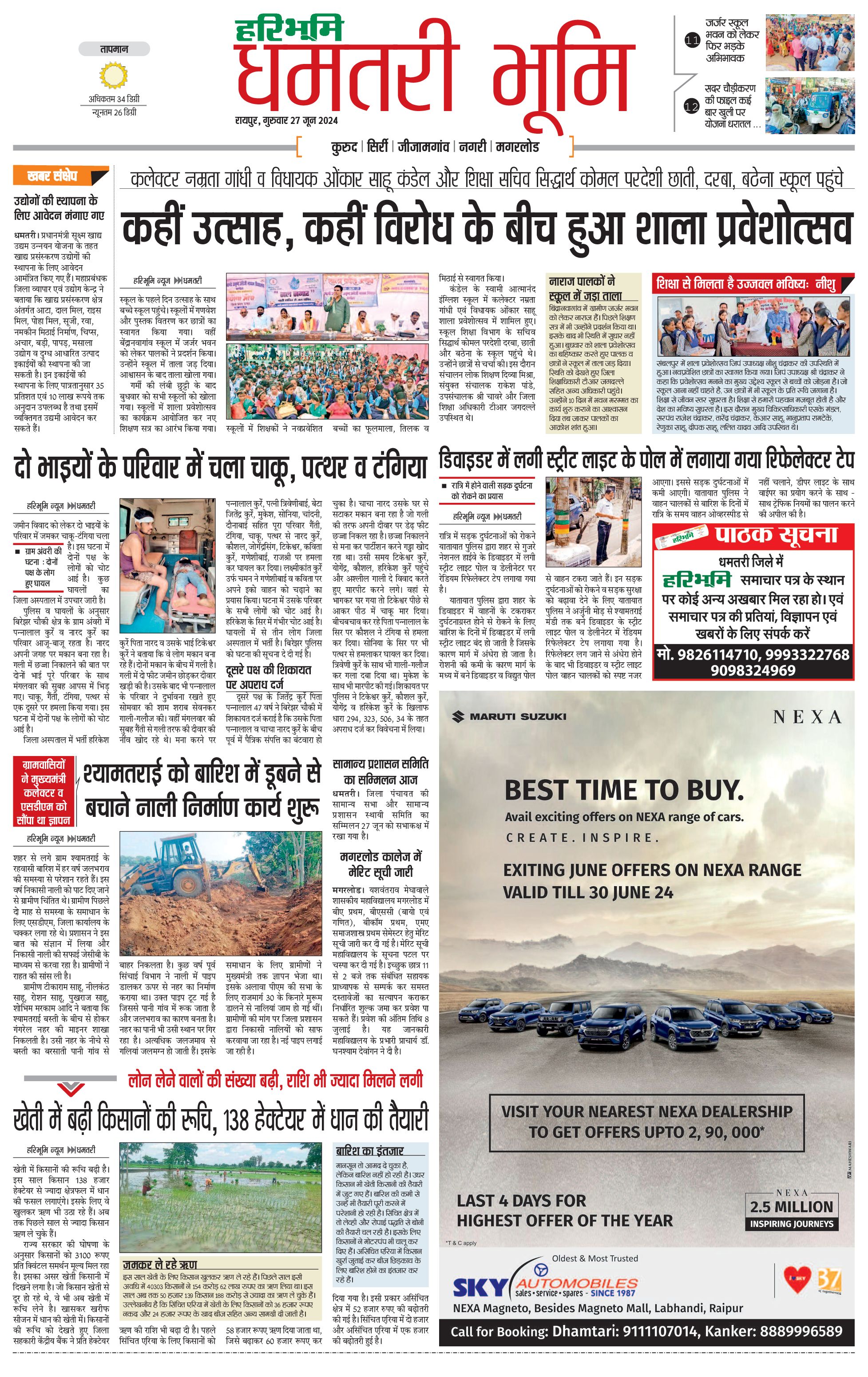 धमतरी भूमि - 27 Jun 2024 - - Page 1