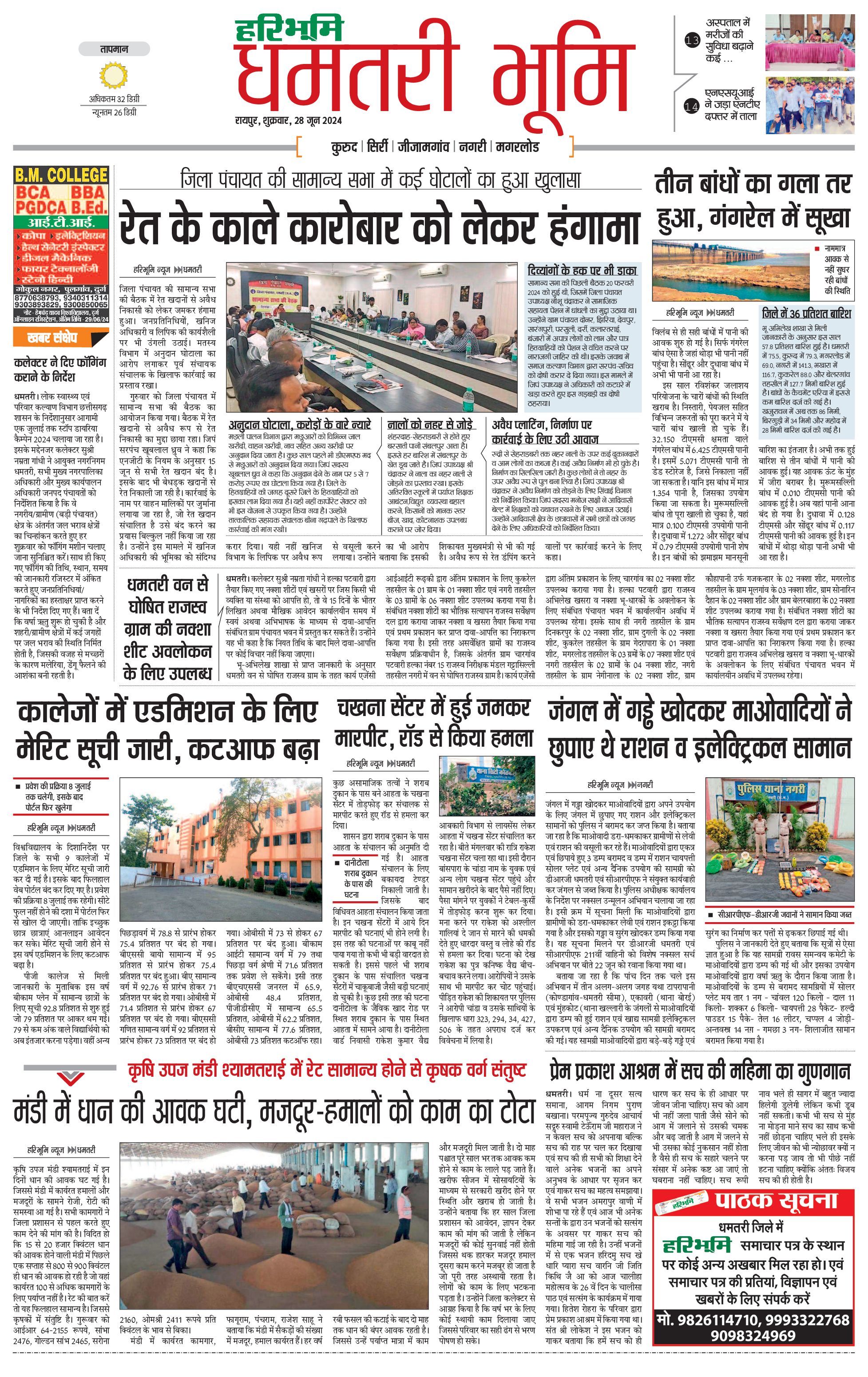 धमतरी भूमि - 28 Jun 2024 - - Page 1