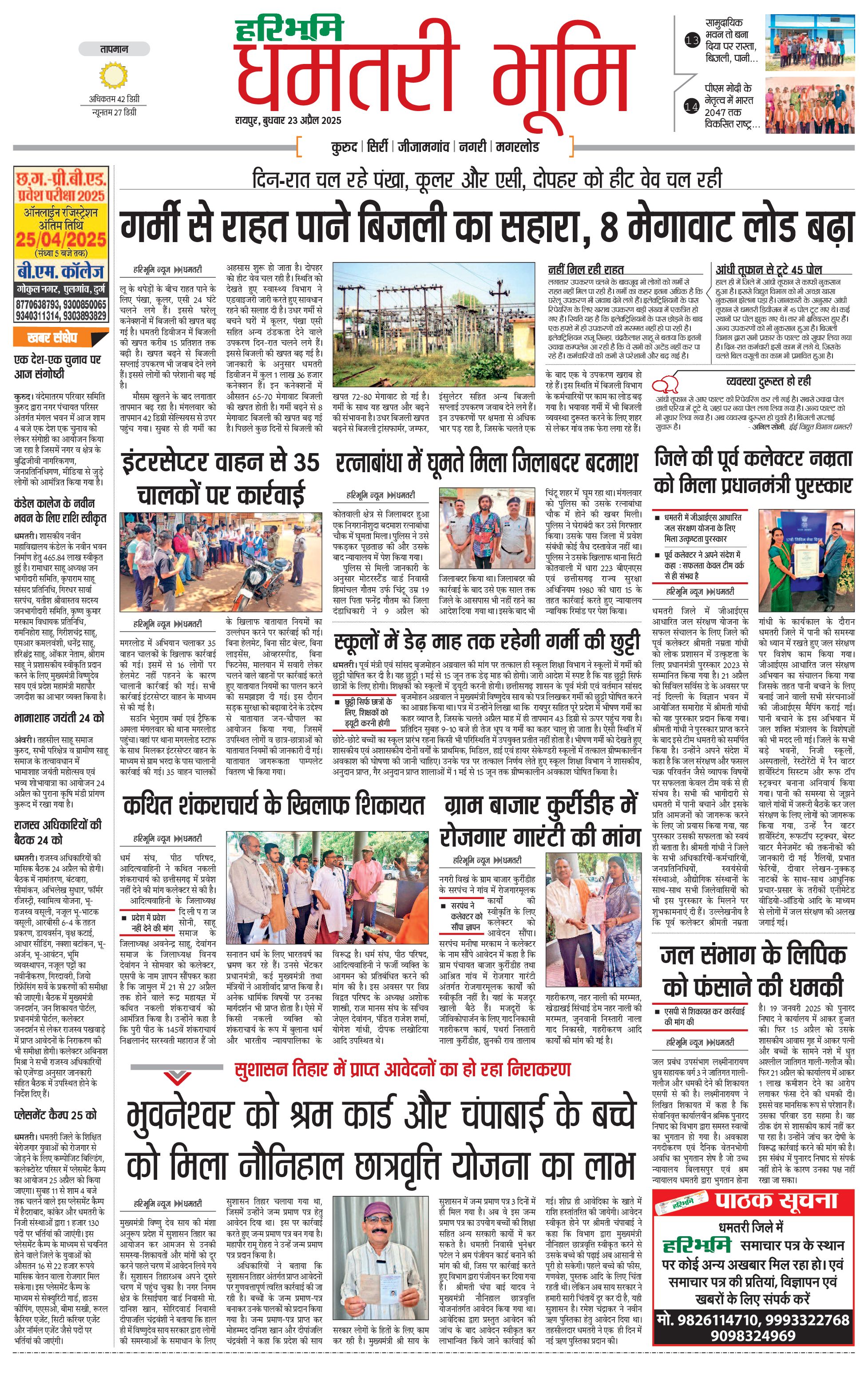 धमतरी भूमि - 23 Apr 2025 - - Page 1