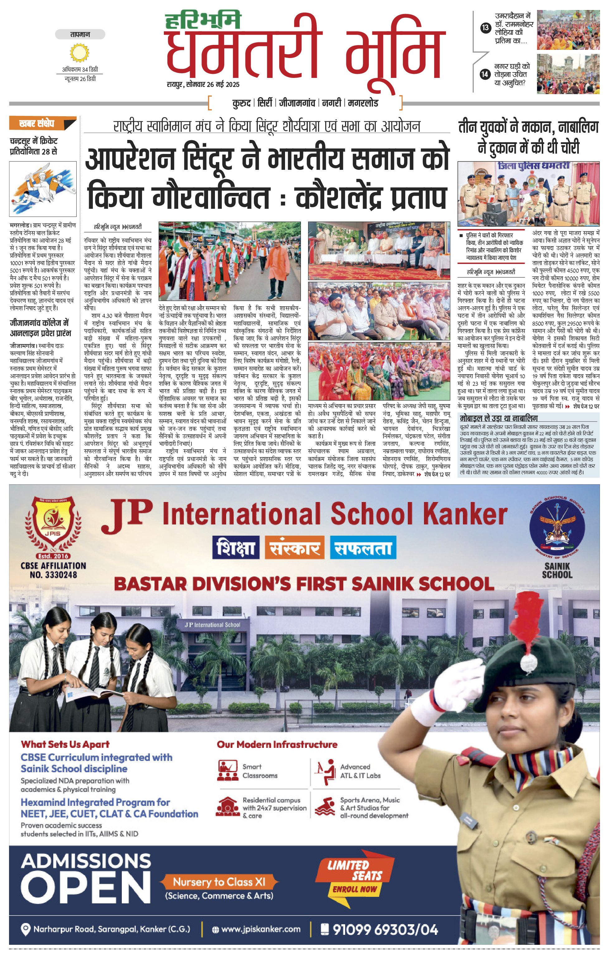 धमतरी भूमि - 26 May 2025 - - Page 1