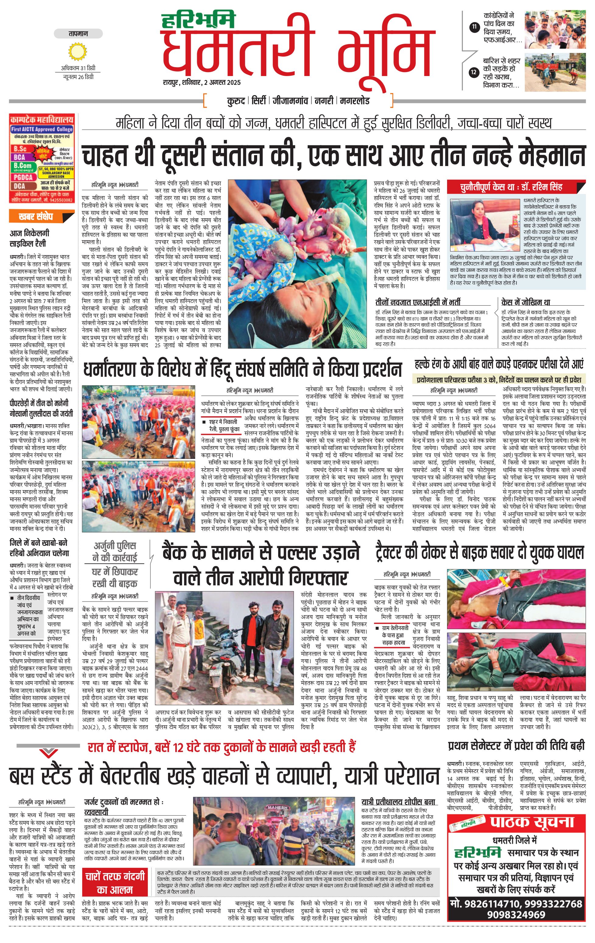 धमतरी भूमि - 02 Aug 2025 - - Page 1