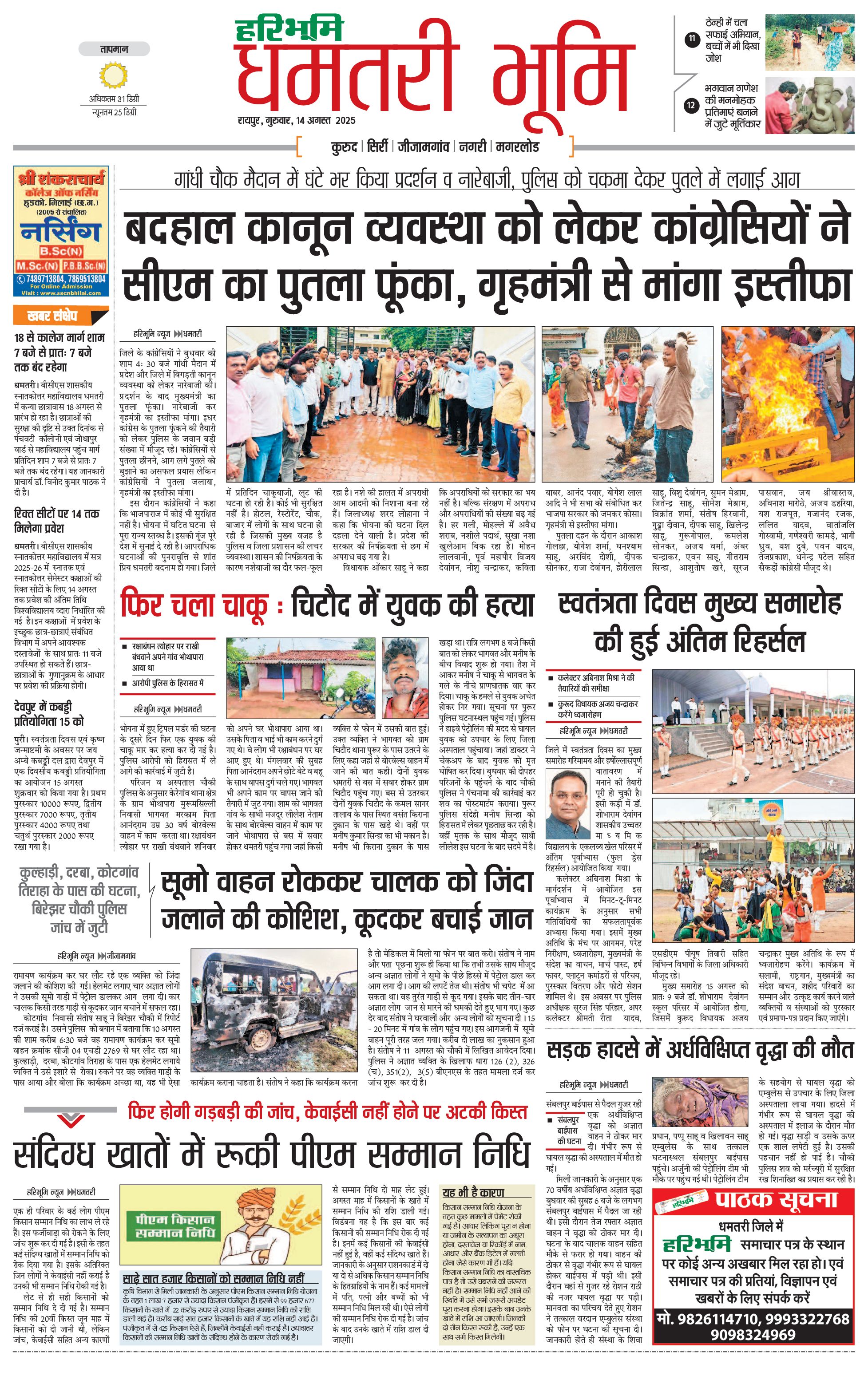 धमतरी भूमि - 14 Aug 2025 - - Page 1