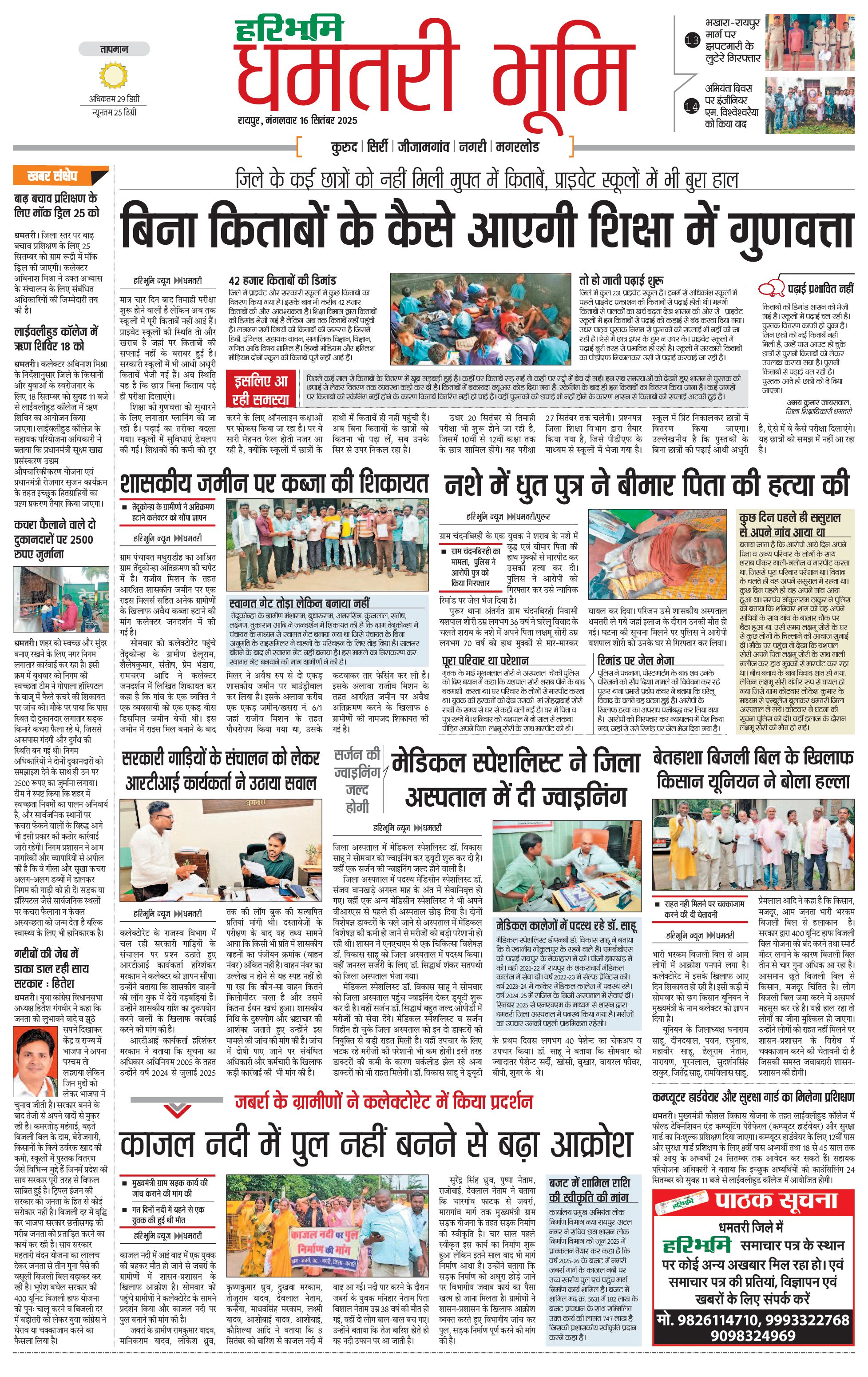 धमतरी भूमि - 16 Sep 2025 - - Page 1