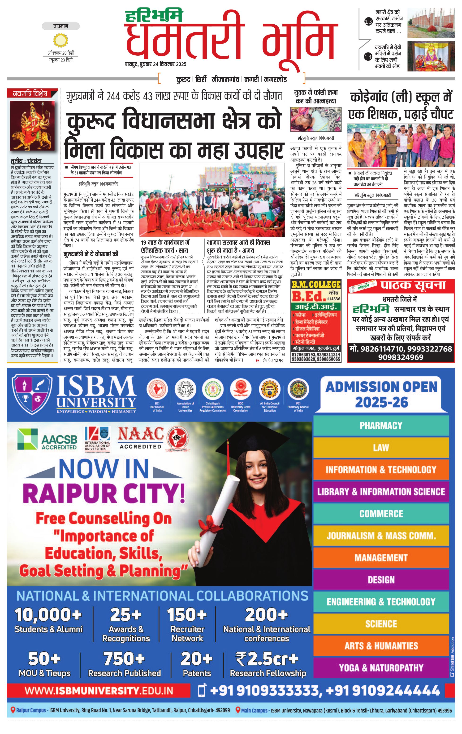 धमतरी भूमि - 24 Sep 2025 - - Page 1
