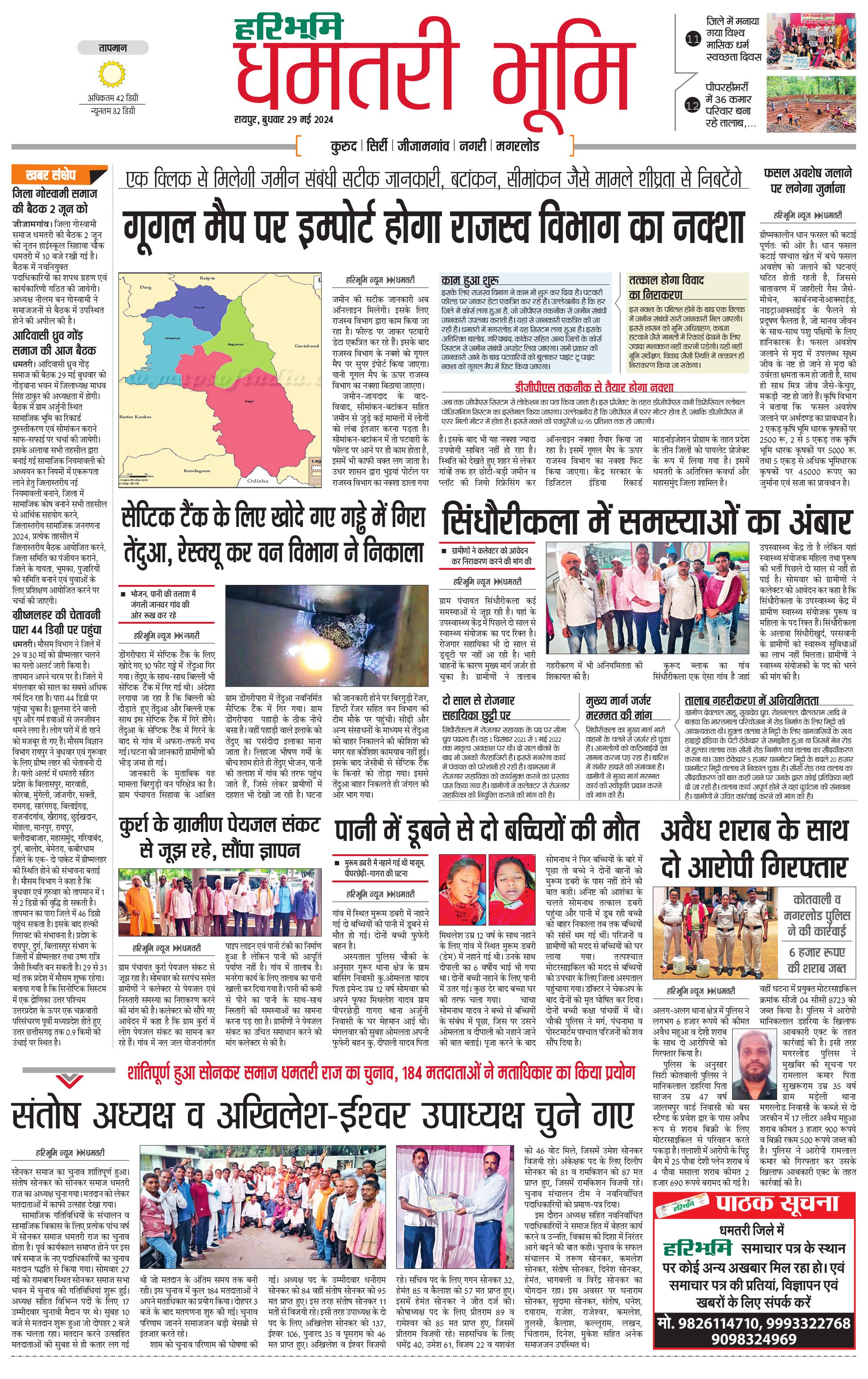 धमतरी भूमि - 29 May 2024 - - Page 1