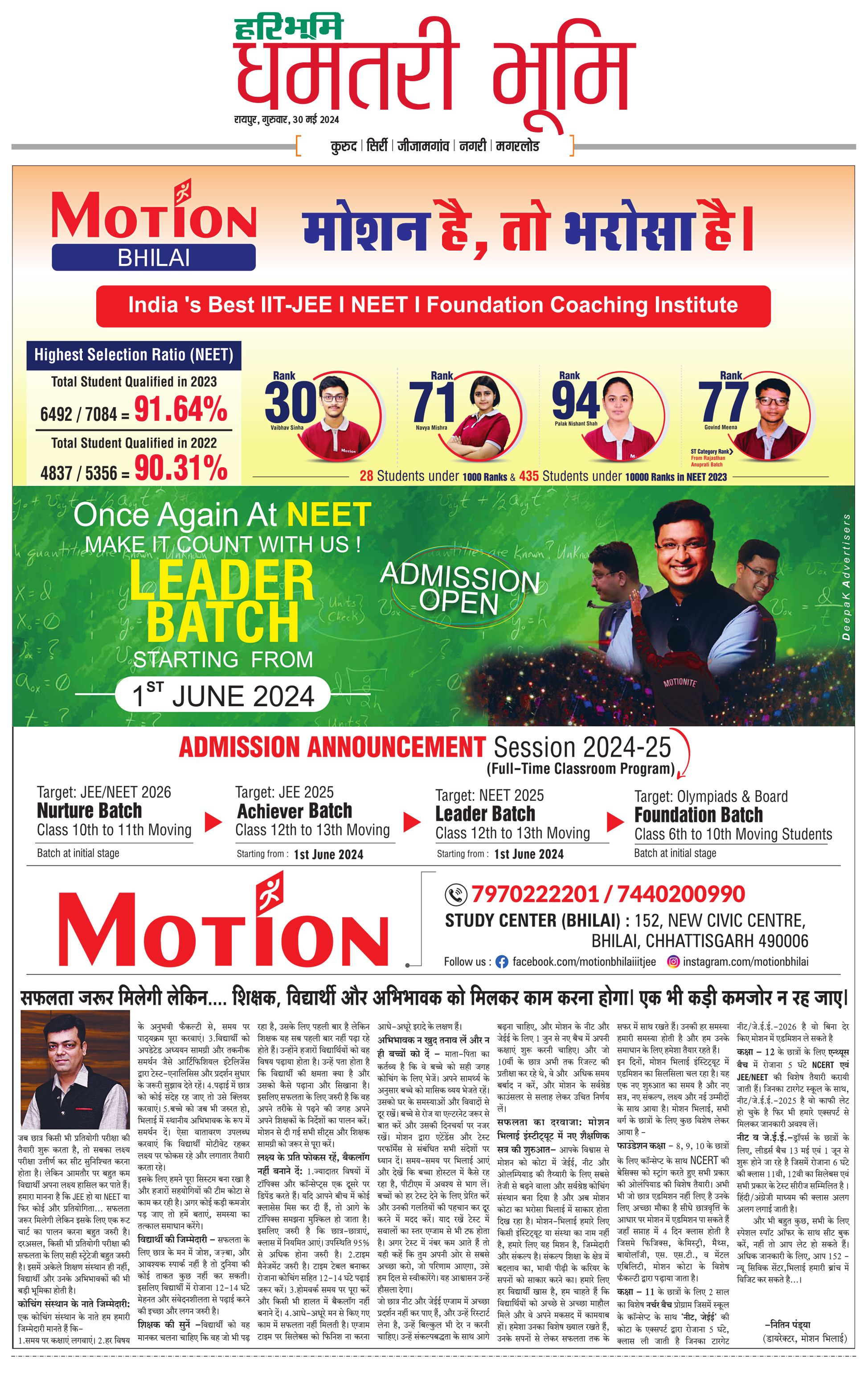 धमतरी भूमि - 30 May 2024 - - Page 1