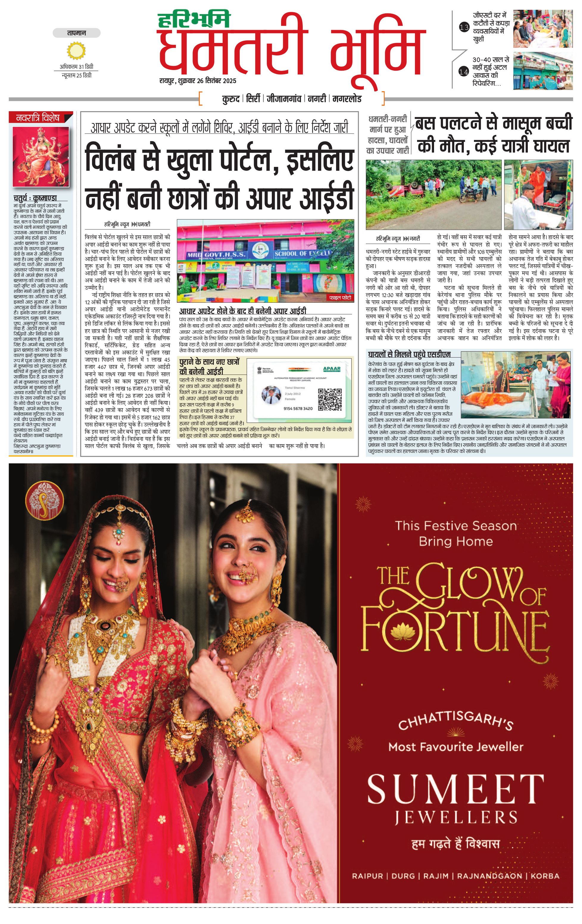 धमतरी भूमि - 26 Sep 2025 - - Page 1