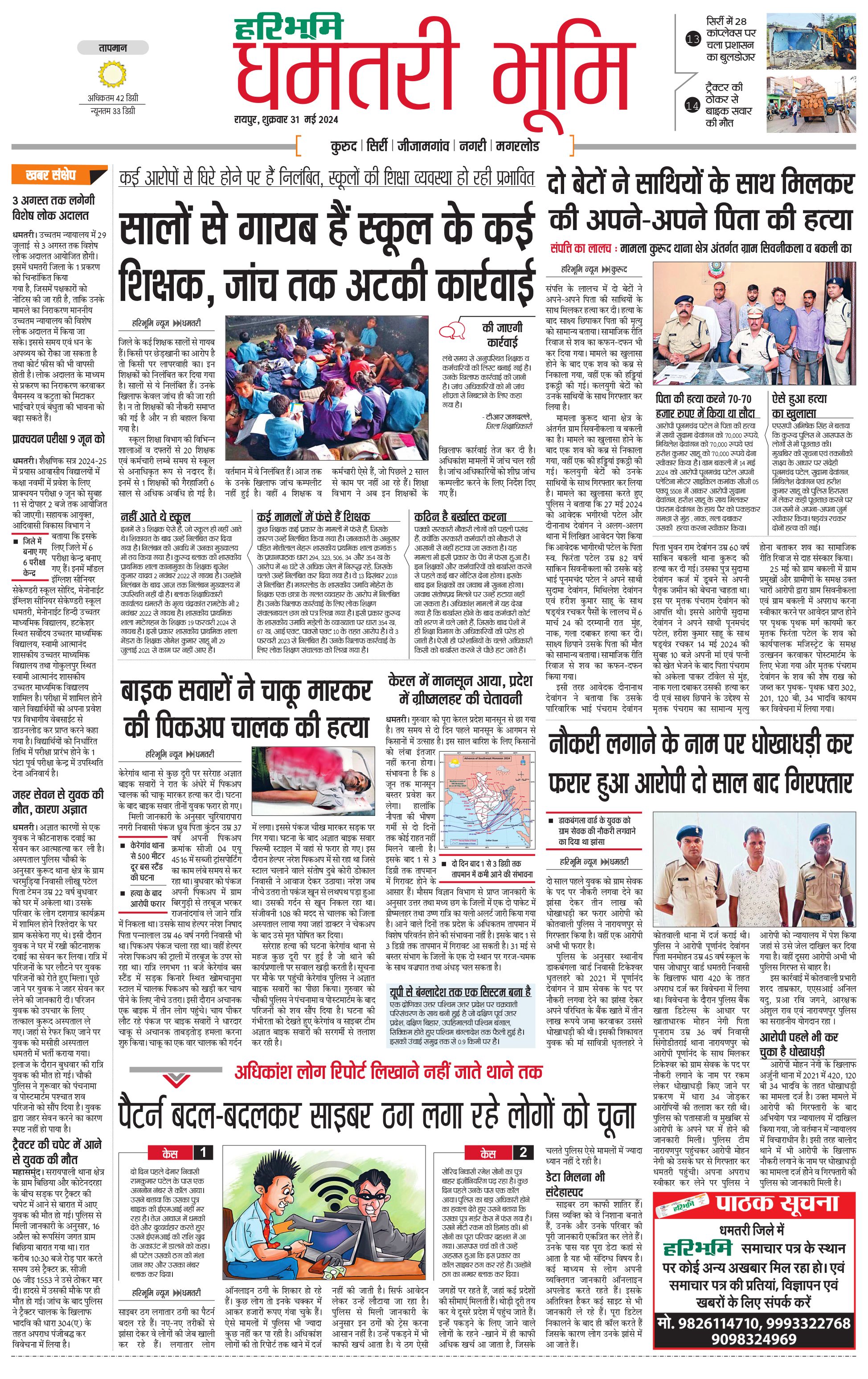 धमतरी भूमि - 31 May 2024 - - Page 1