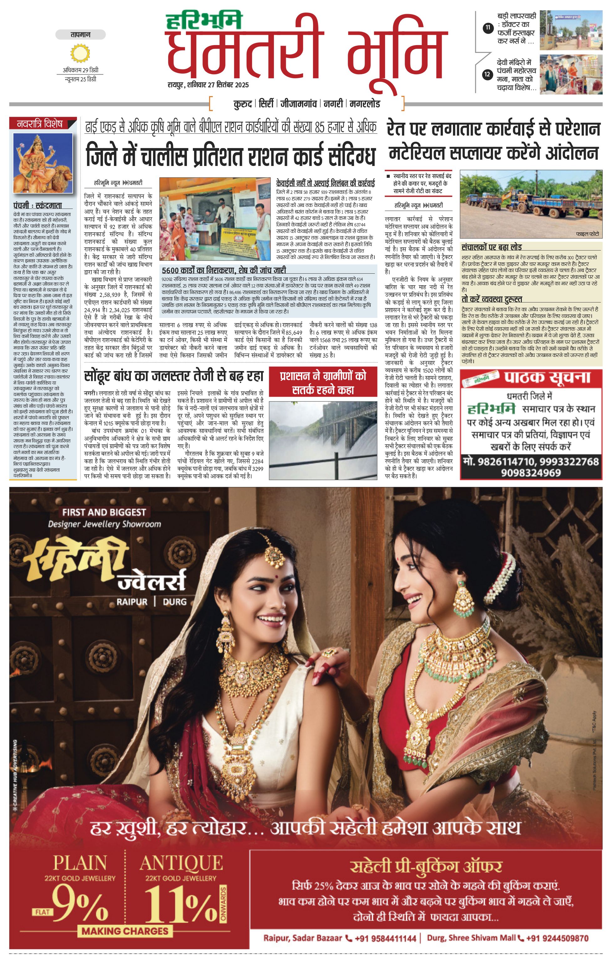 धमतरी भूमि - 27 Sep 2025 - - Page 1