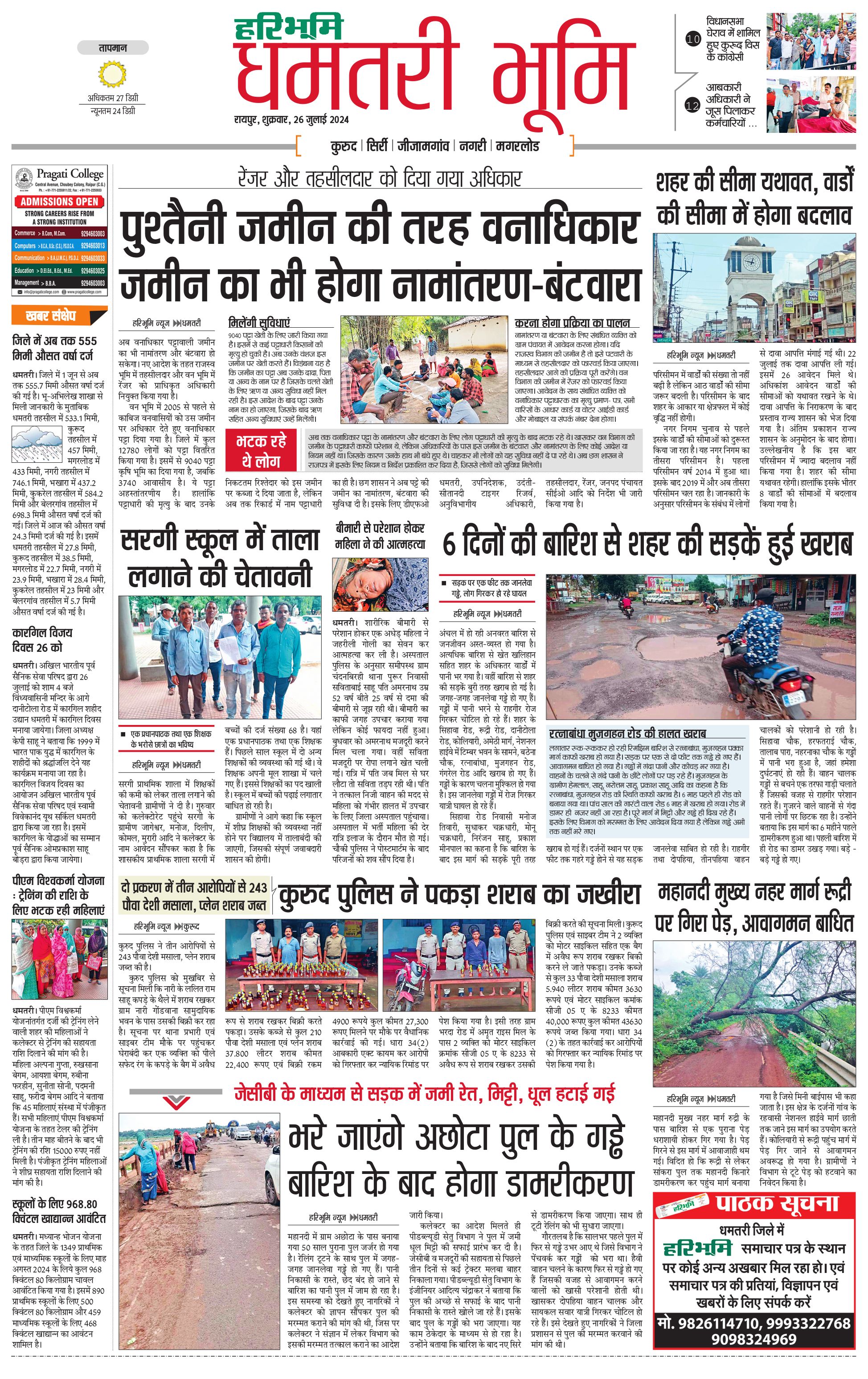 धमतरी भूमि - 26 Jul 2024 - - Page 1