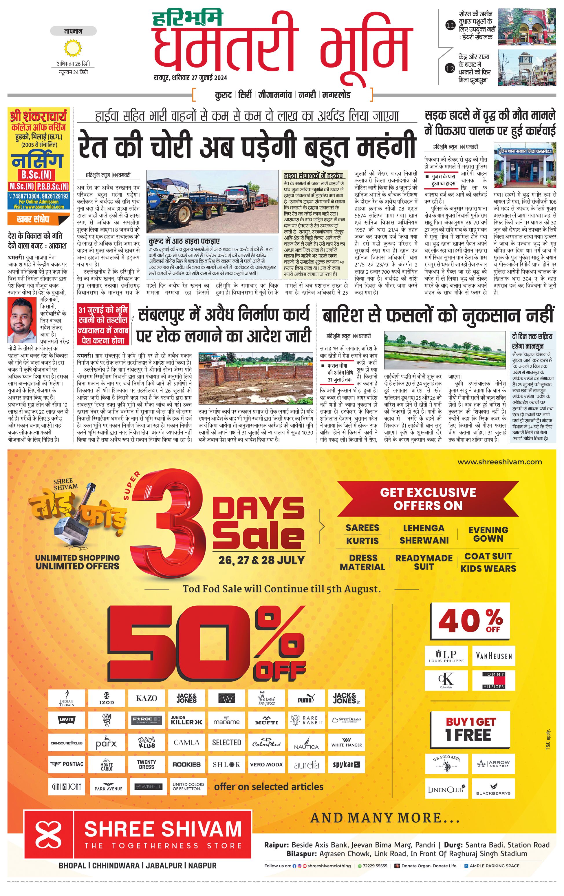 धमतरी भूमि - 27 Jul 2024 - - Page 1