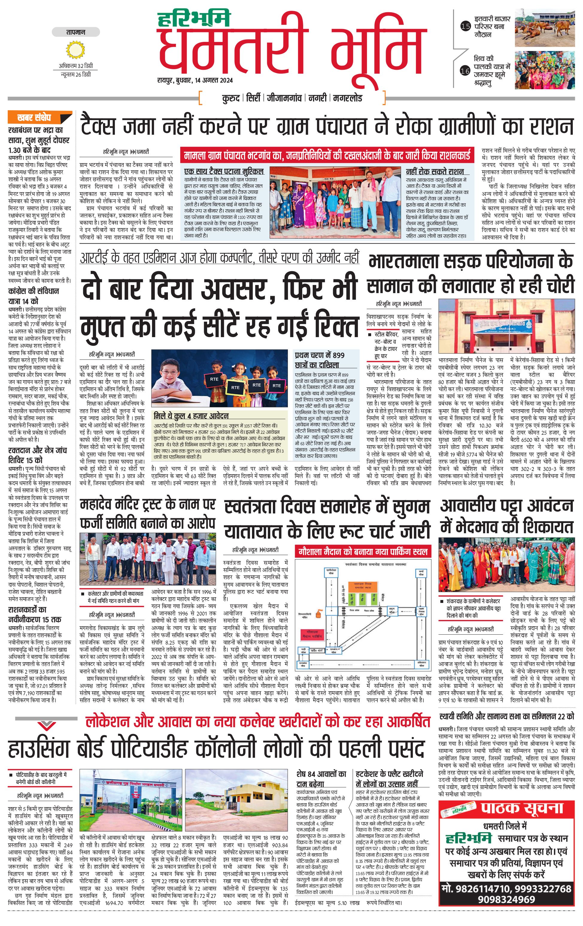 धमतरी भूमि - 14 Aug 2024 - - Page 1