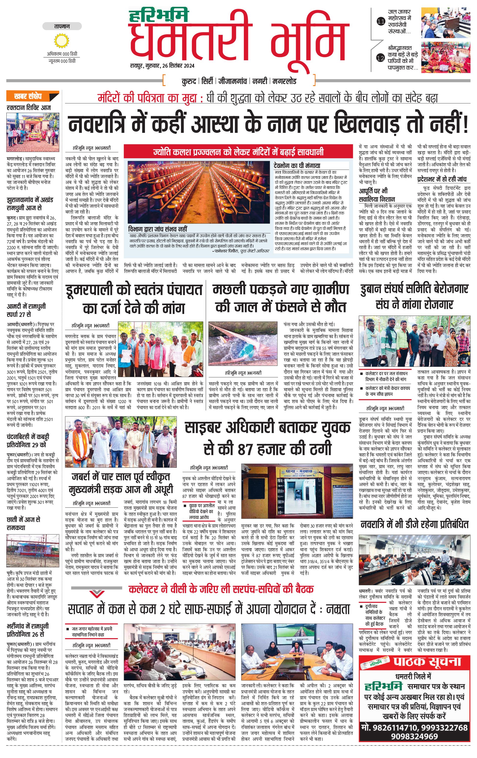 धमतरी भूमि - 26 Sep 2024 - - Page 1