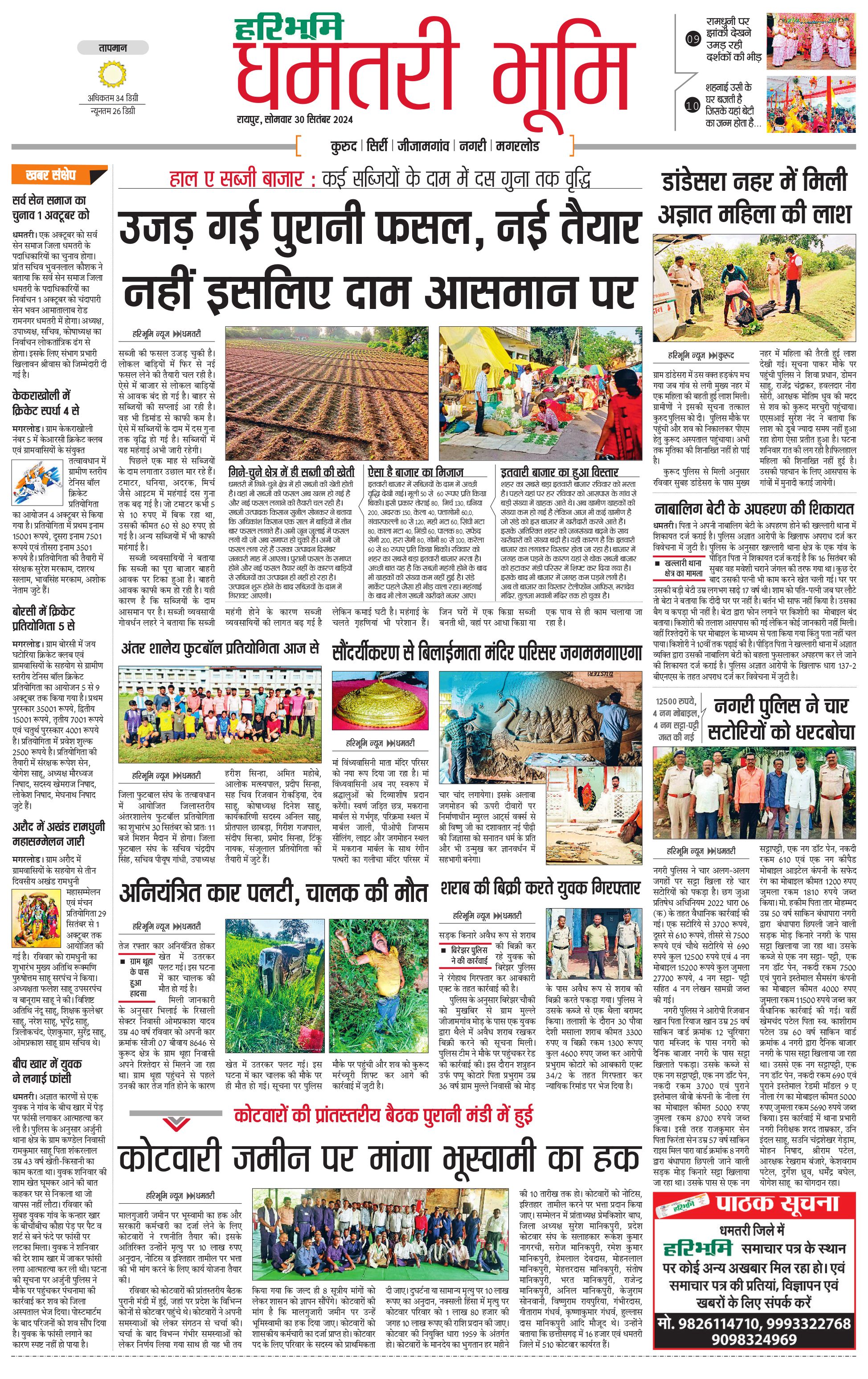 धमतरी भूमि - 30 Sep 2024 - - Page 1