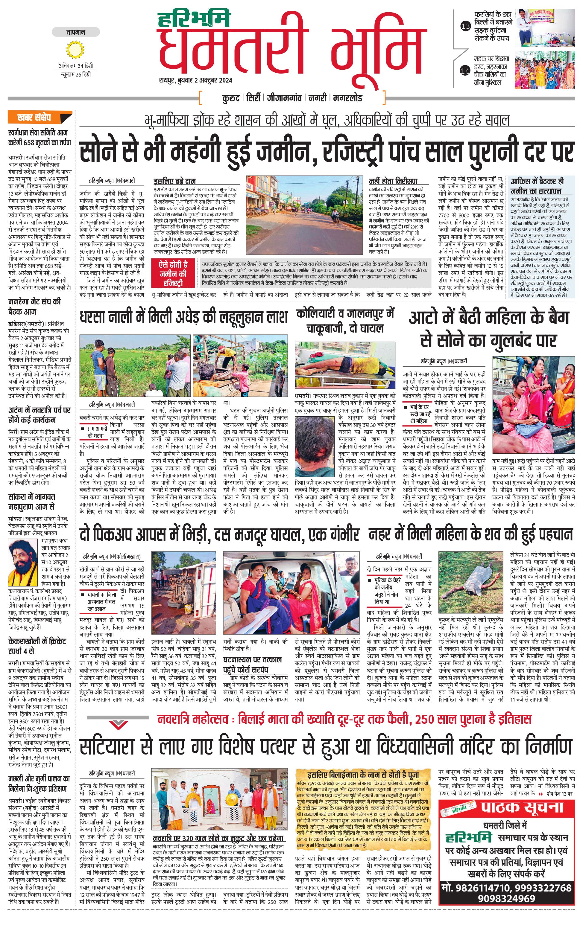 धमतरी भूमि - 02 Oct 2024 - - Page 1