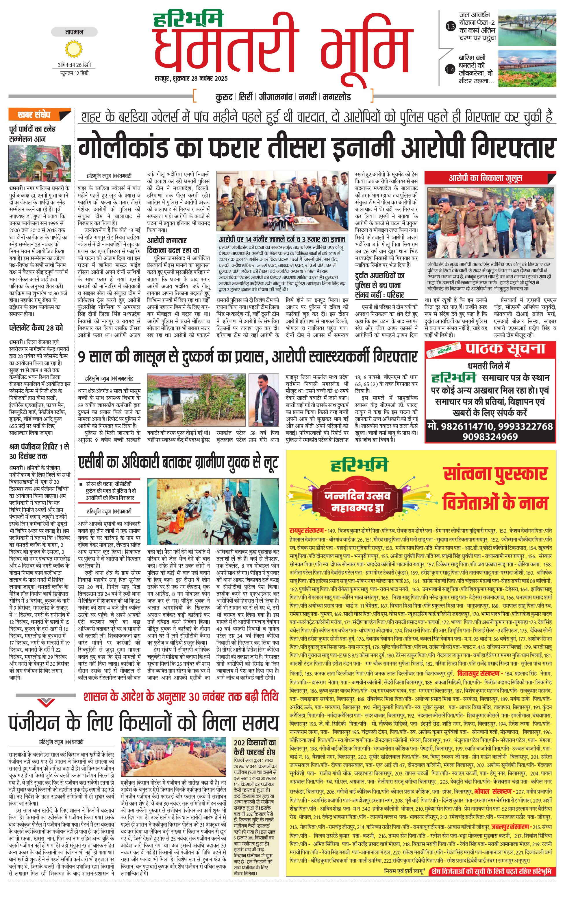 धमतरी भूमि - 28 Nov 2025 - - Page 1