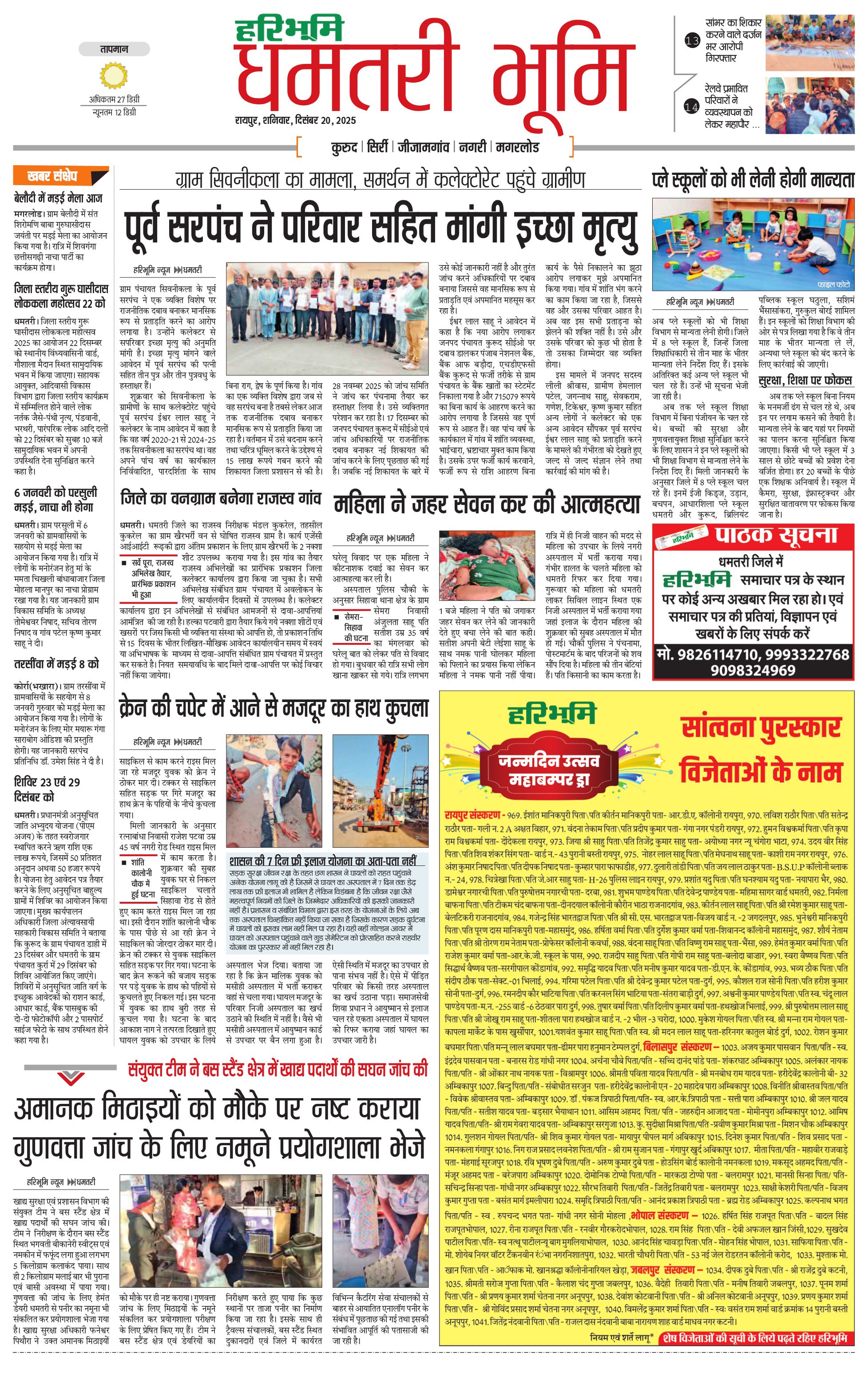 धमतरी भूमि - 20 Dec 2025 - - Page 1