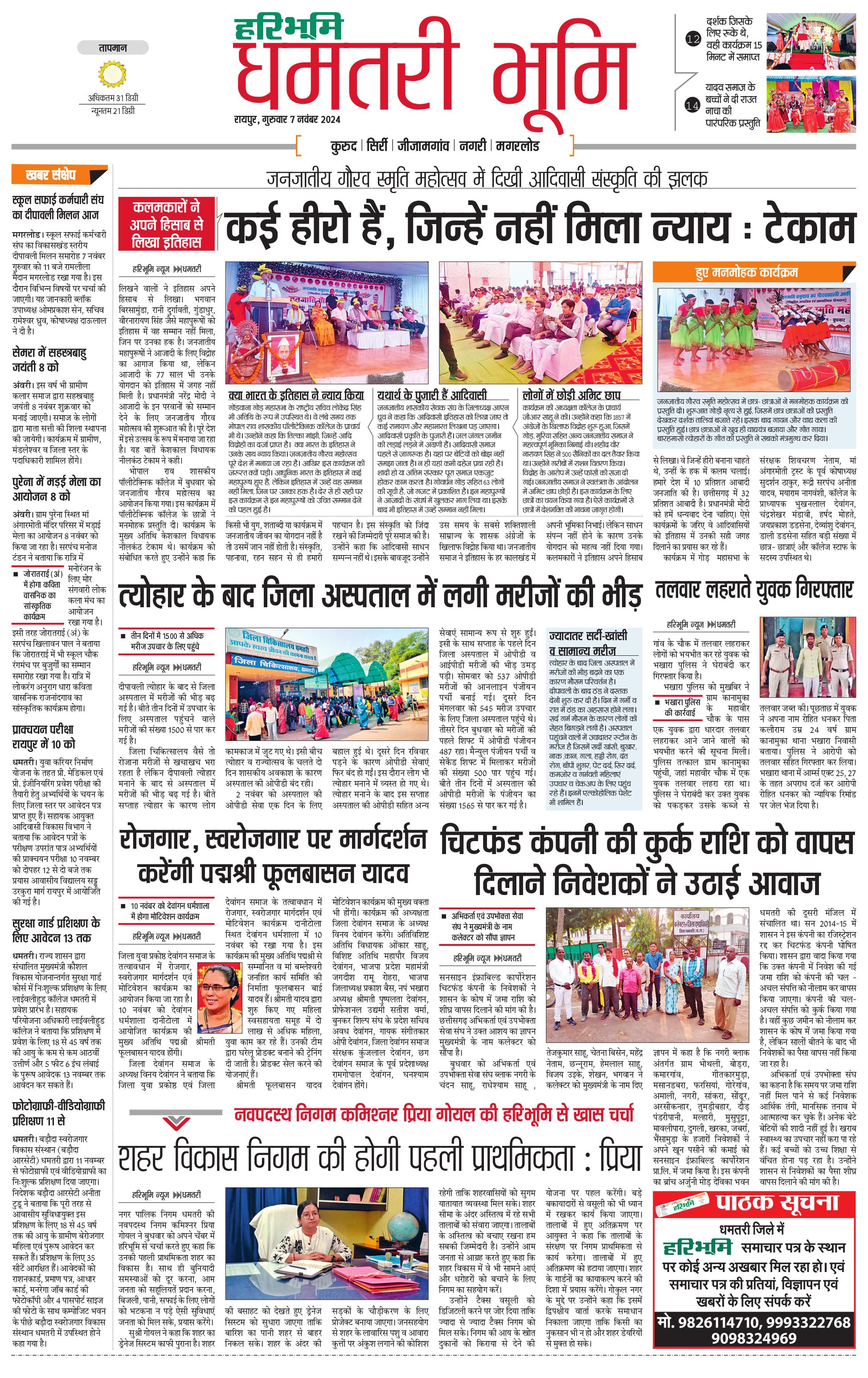धमतरी भूमि - 07 Nov 2024 - - Page 1