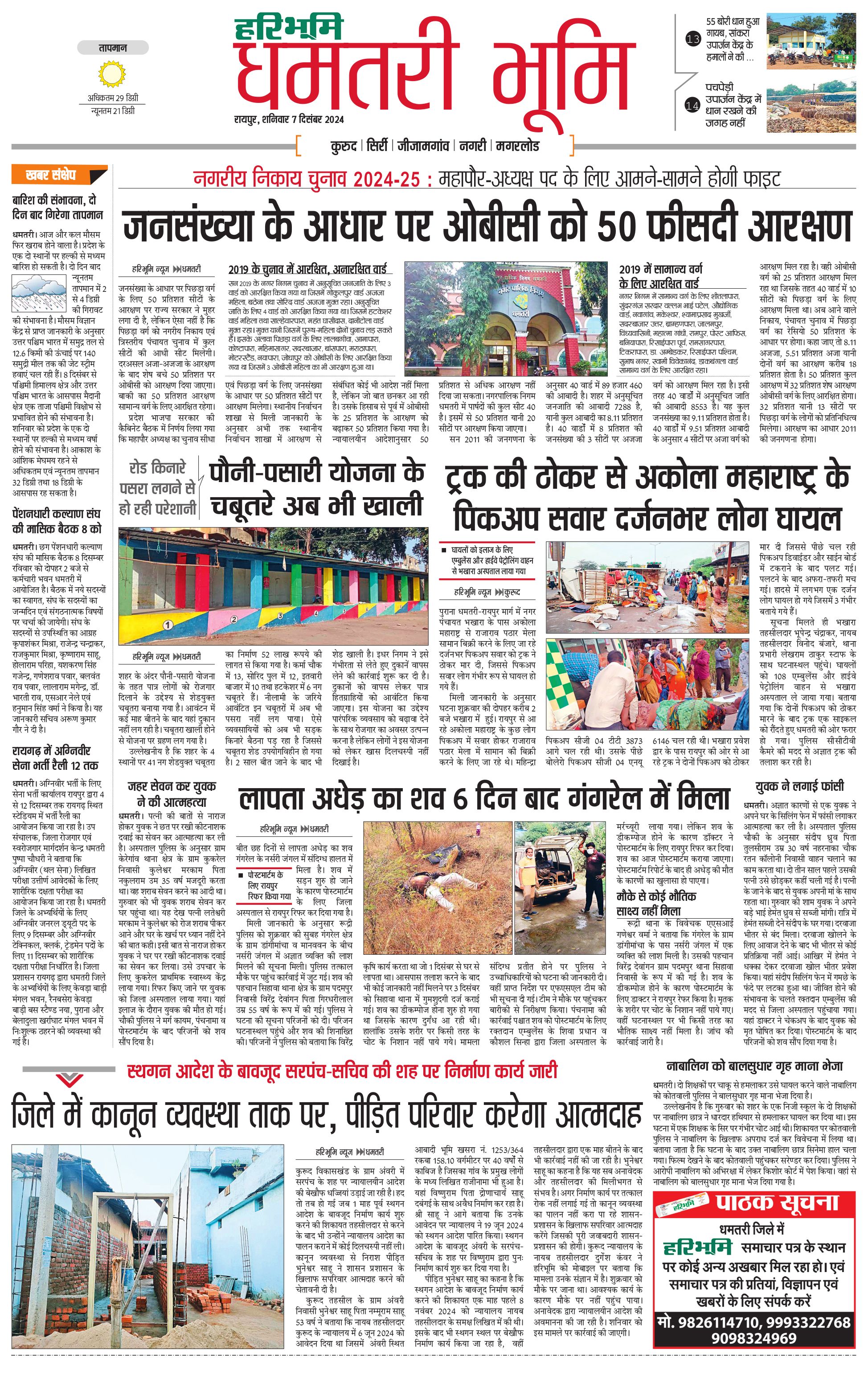 धमतरी भूमि - 07 Dec 2024 - - Page 1