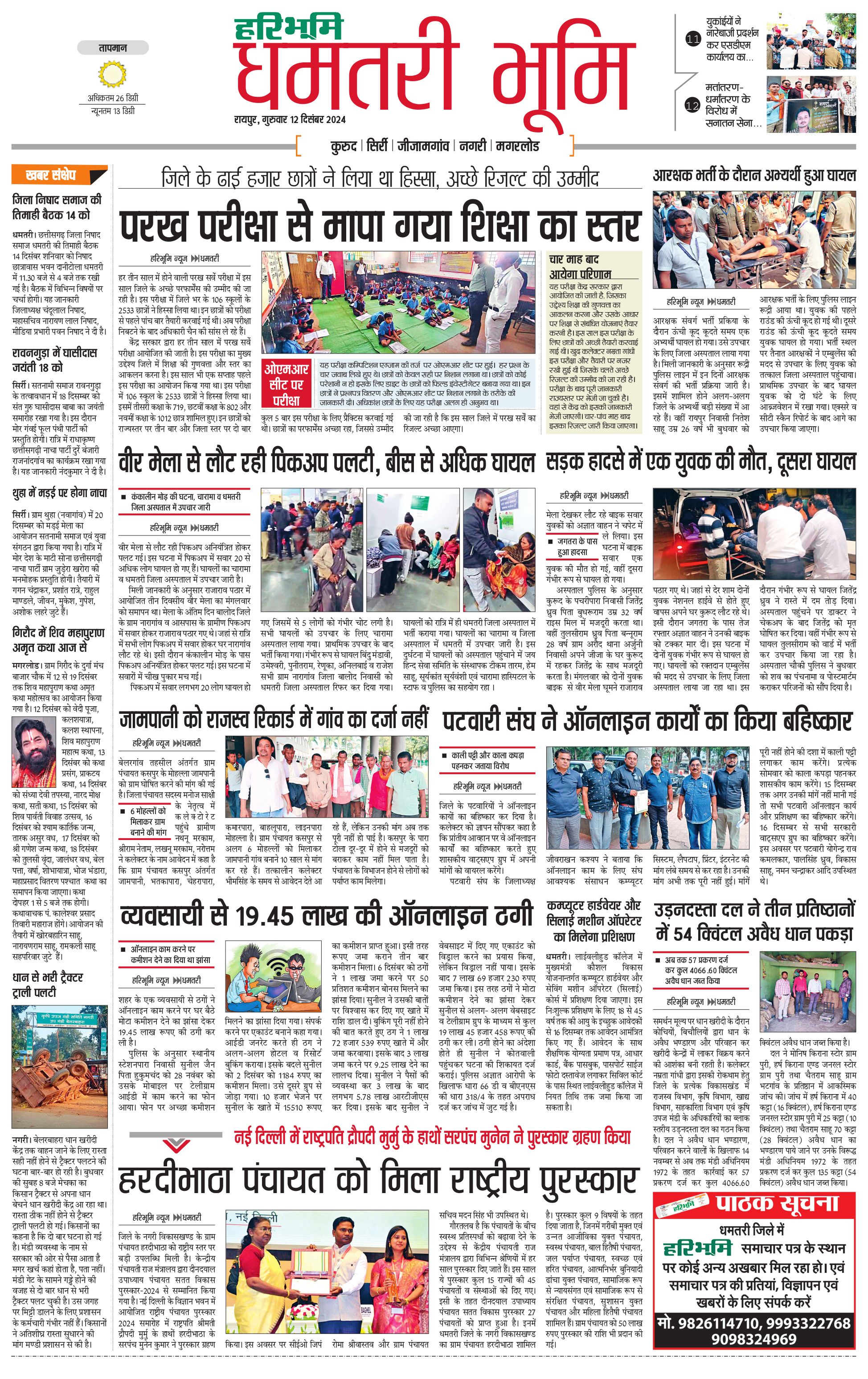 धमतरी भूमि - 12 Dec 2024 - - Page 1