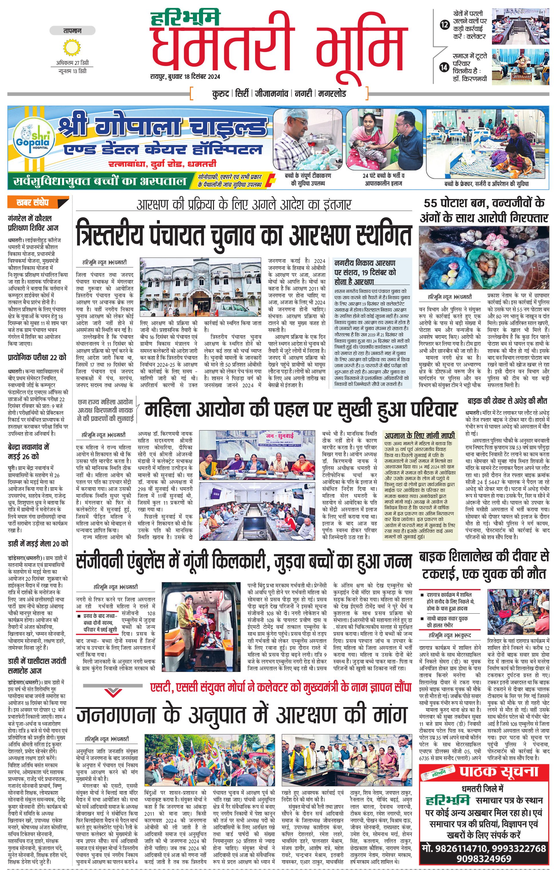 धमतरी भूमि - 18 Dec 2024 - - Page 1