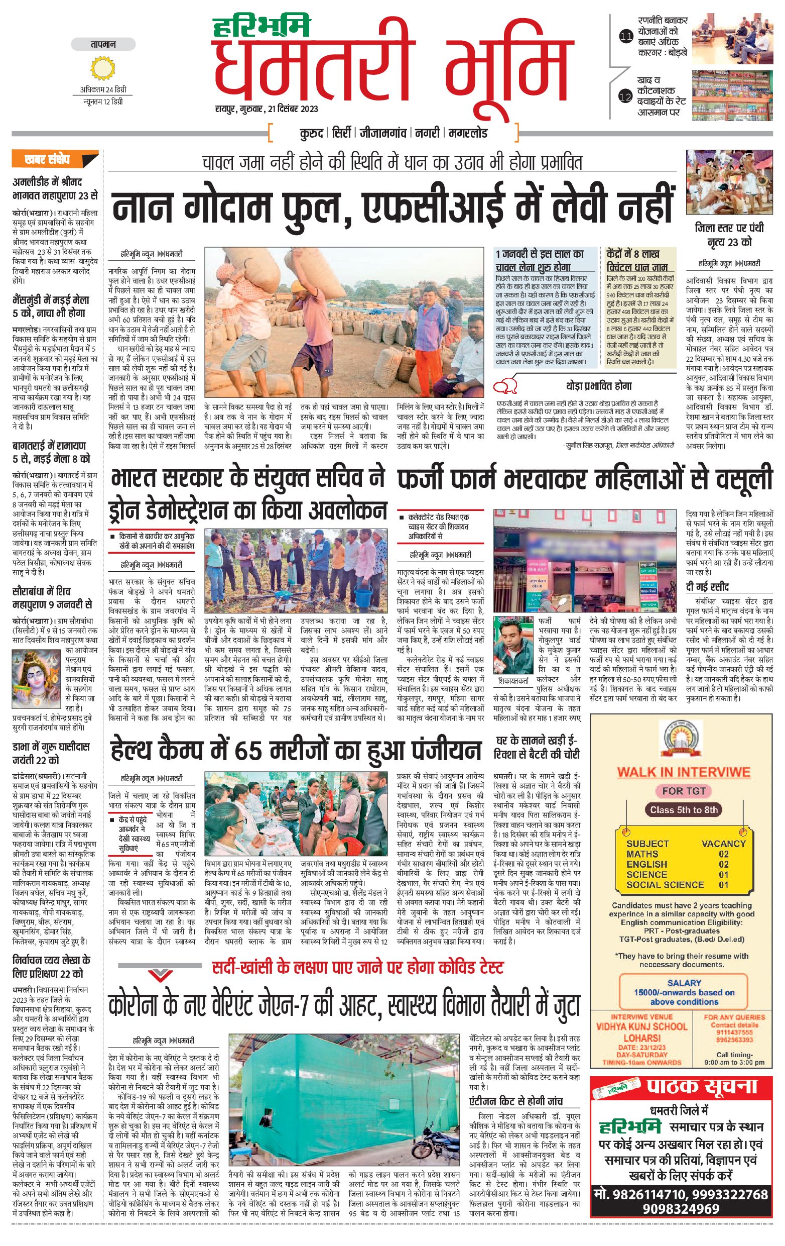 धमतरी भूमि - 21 Dec 2023 - - Page 1