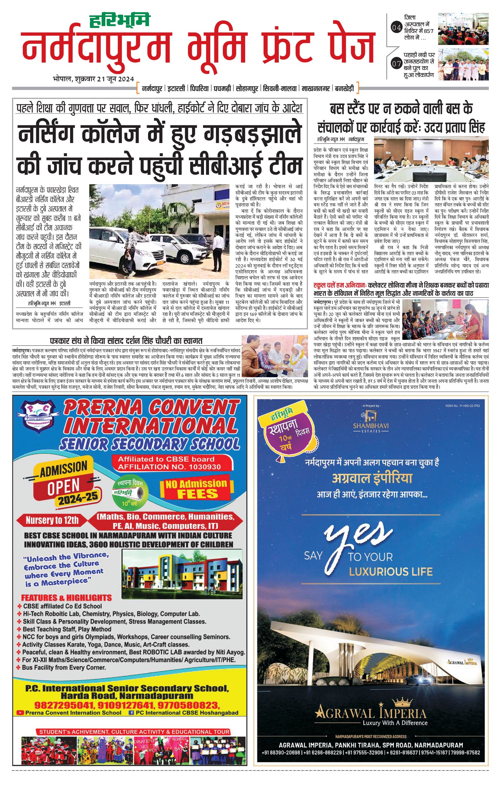 नर्मदापुरम भूमि - 21 Jun 2024 - - Page 1
