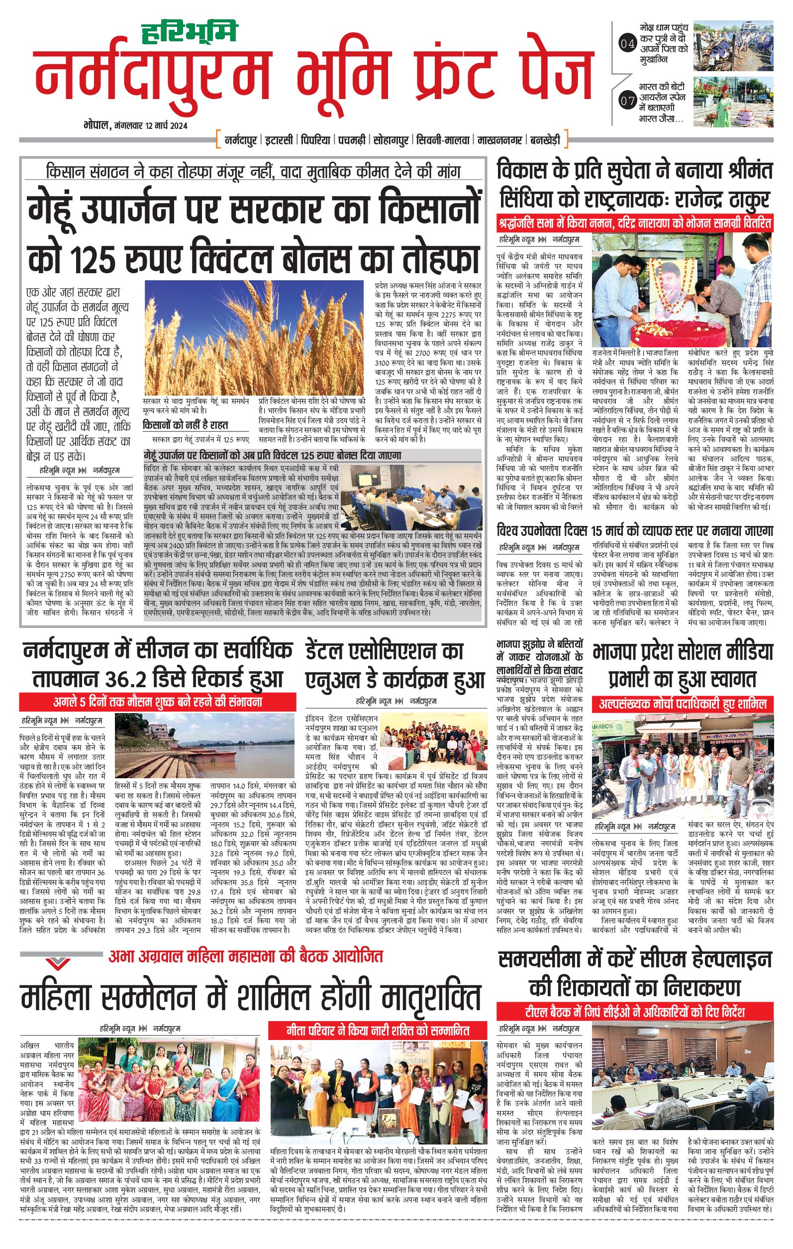 नर्मदापुरम भूमि - 12 Mar 2024 - - Page 1