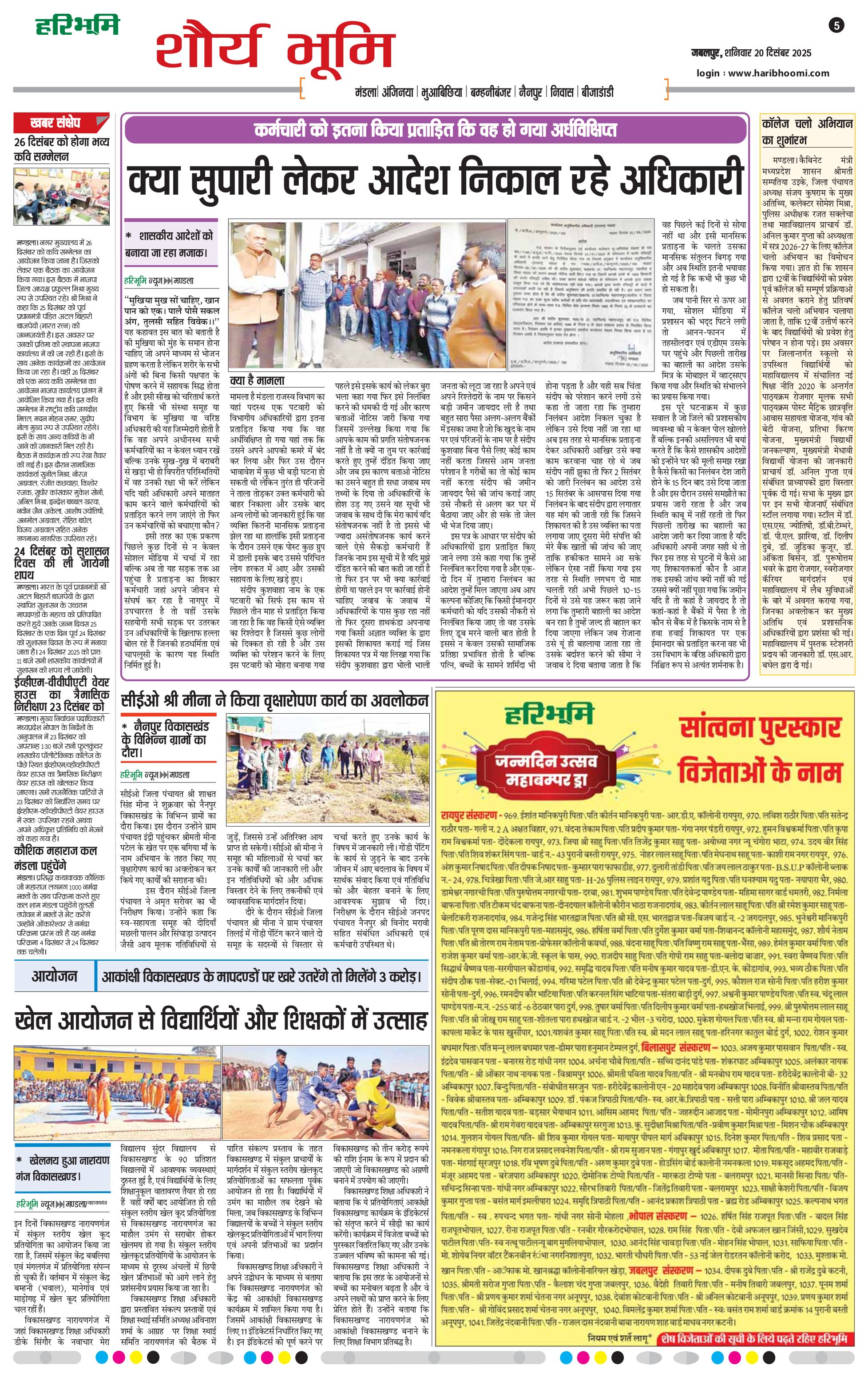 नर्मदा भूमि - 20 Dec 2025 - - Page 1