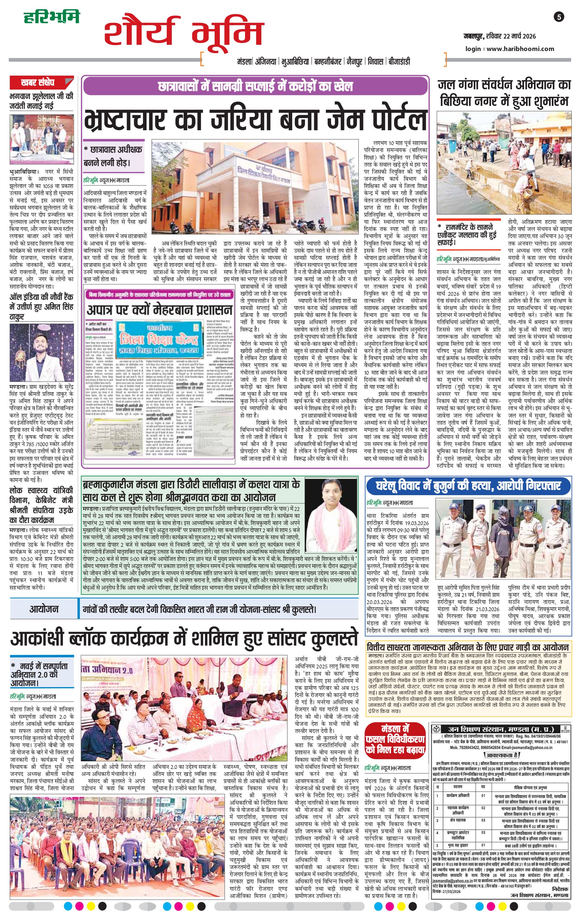 नर्मदा भूमि - 22 Mar 2026 - - Page 1