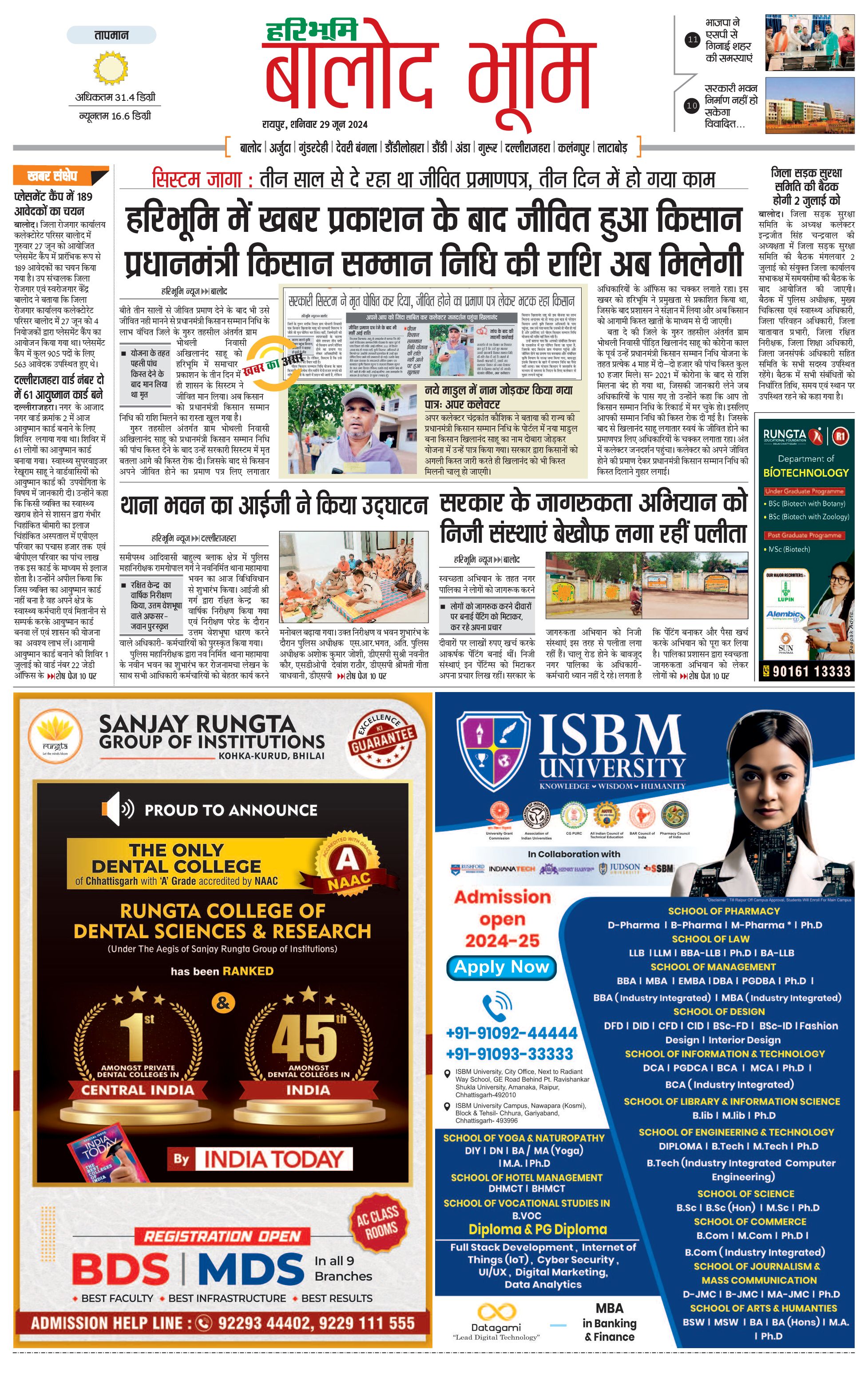 बालोद भूमि - 29 Jun 2024 - - Page 1