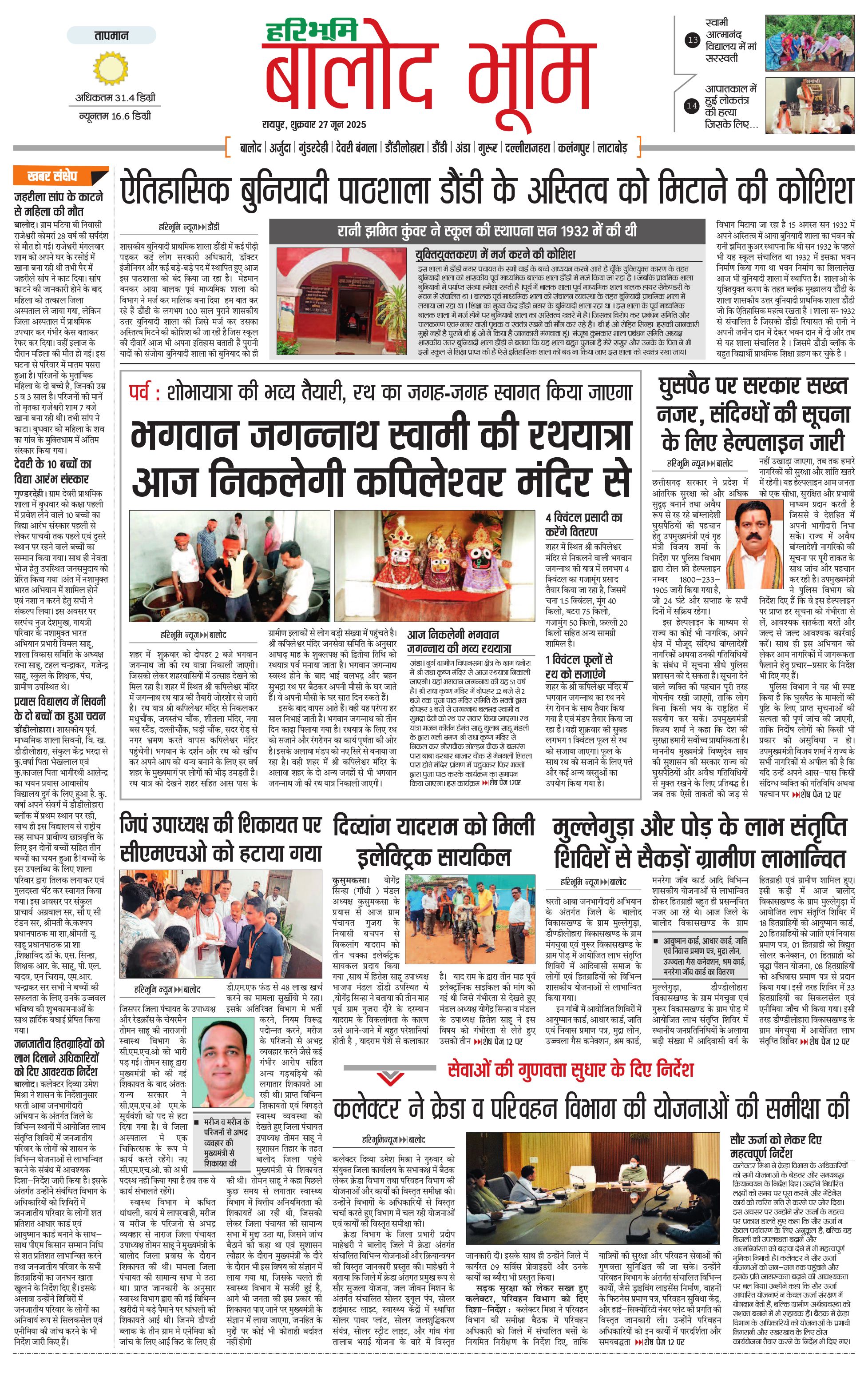 बालोद भूमि - 27 Jun 2025 - - Page 1