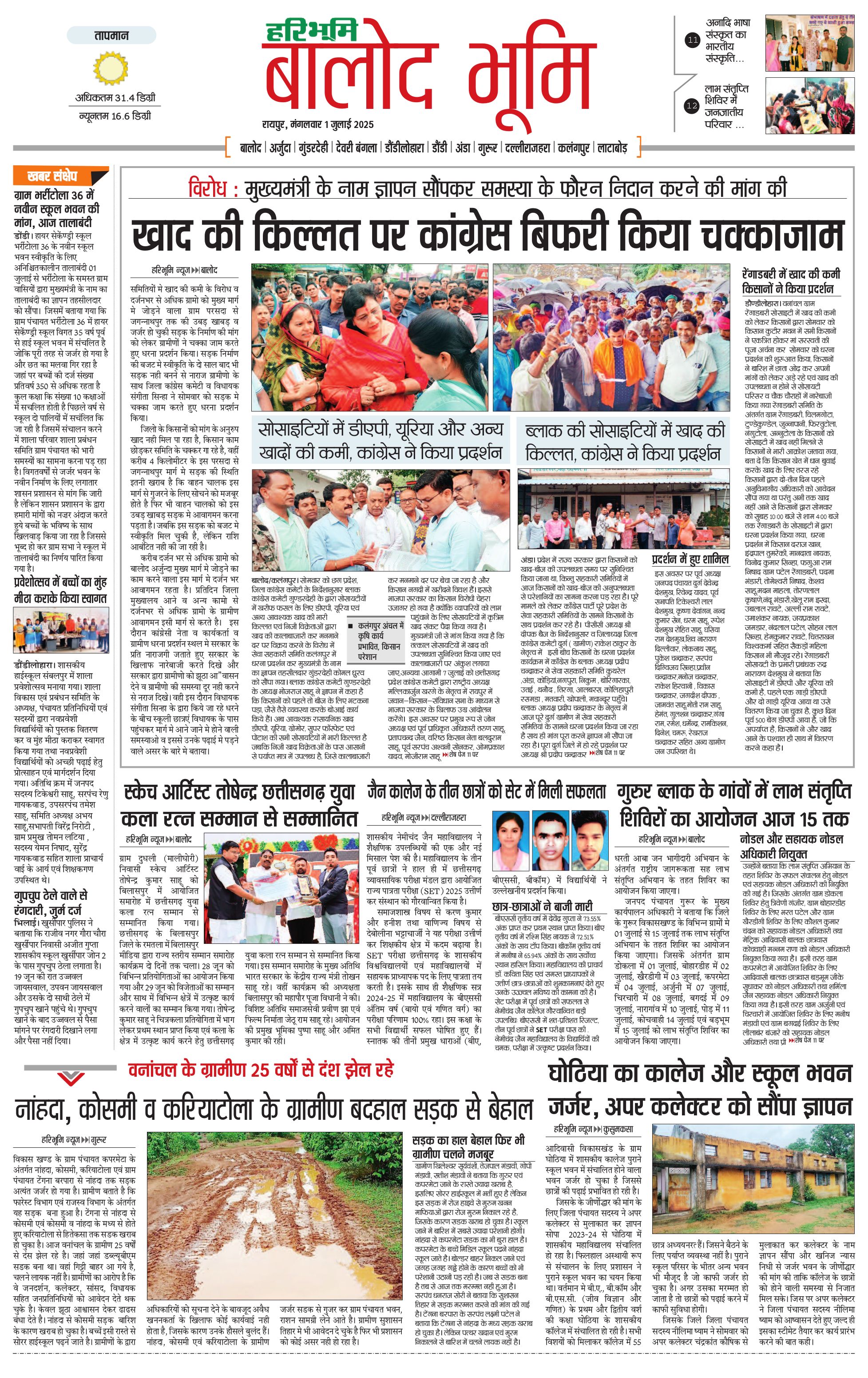 बालोद भूमि - 01 Jul 2025 - - Page 1