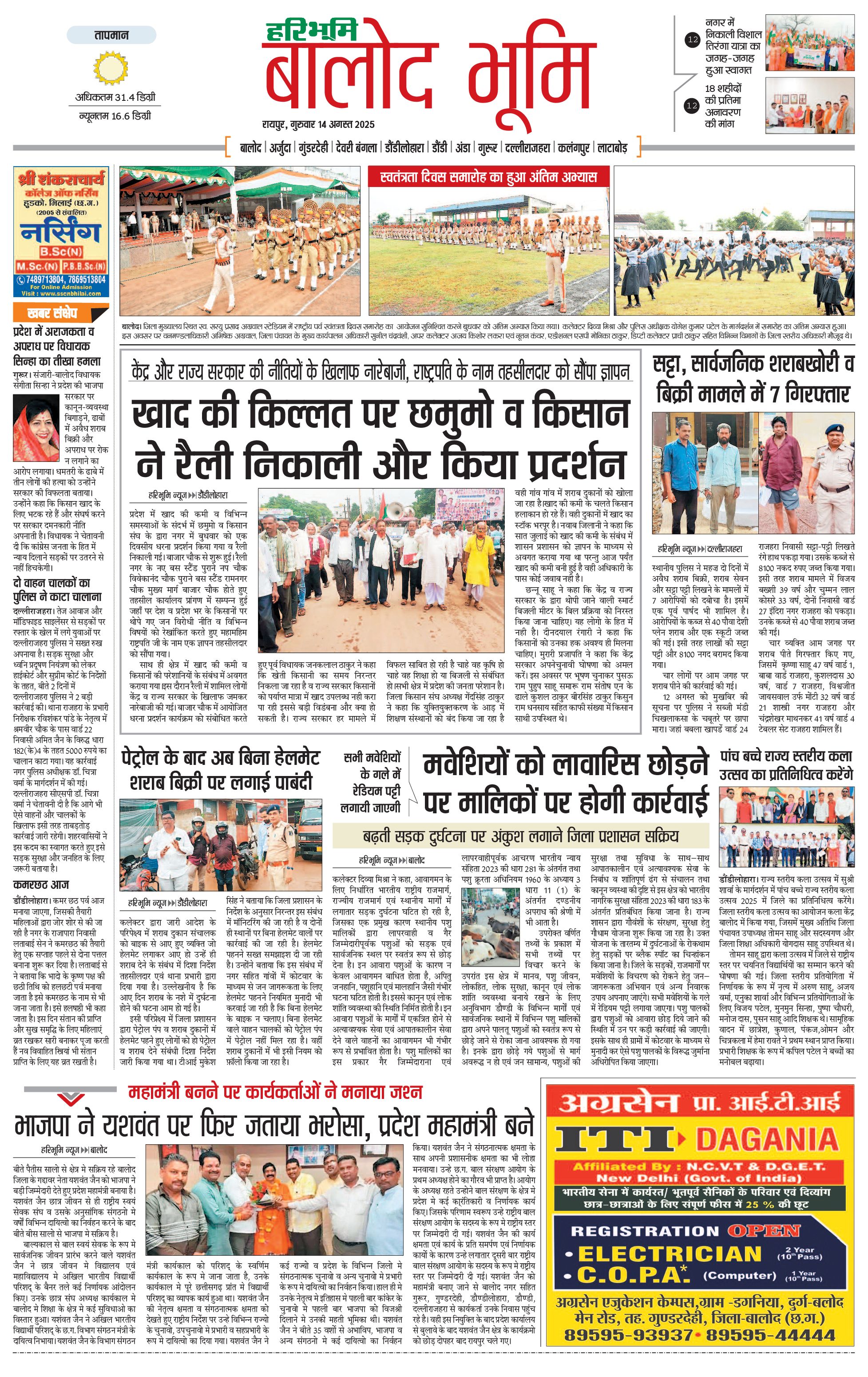 बालोद भूमि - 14 Aug 2025 - - Page 1