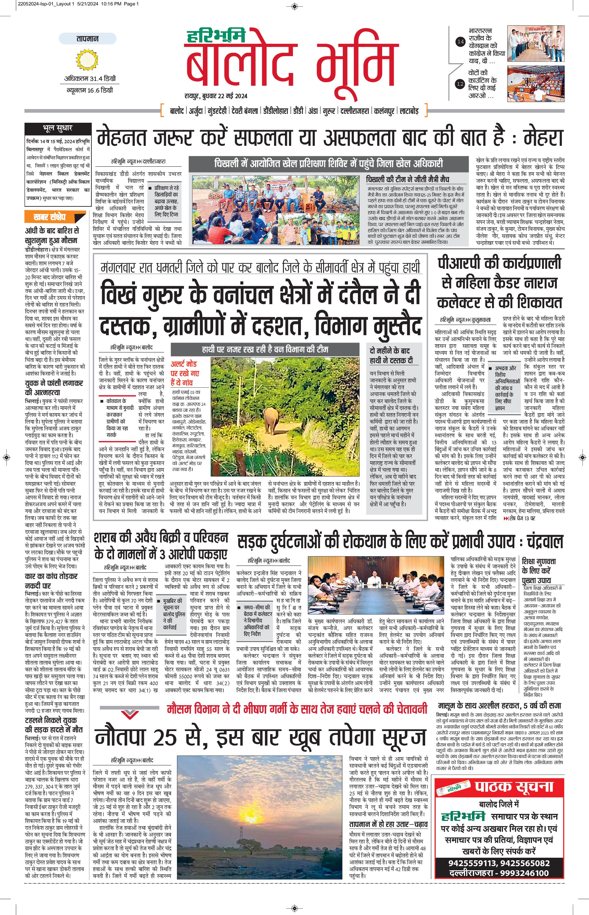 बालोद भूमि - 22 May 2024 - - Page 1