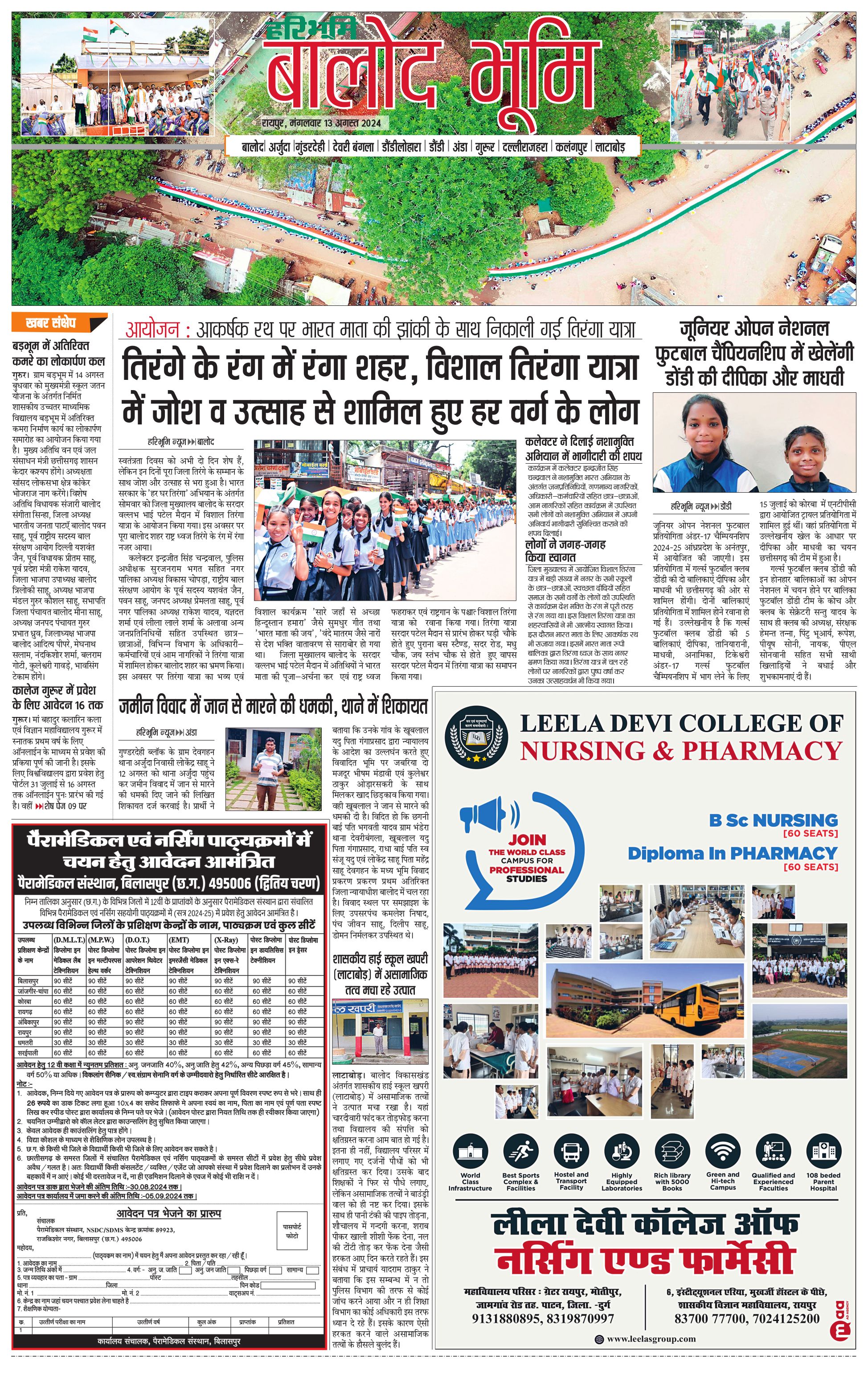 बालोद भूमि - 13 Aug 2024 - - Page 1