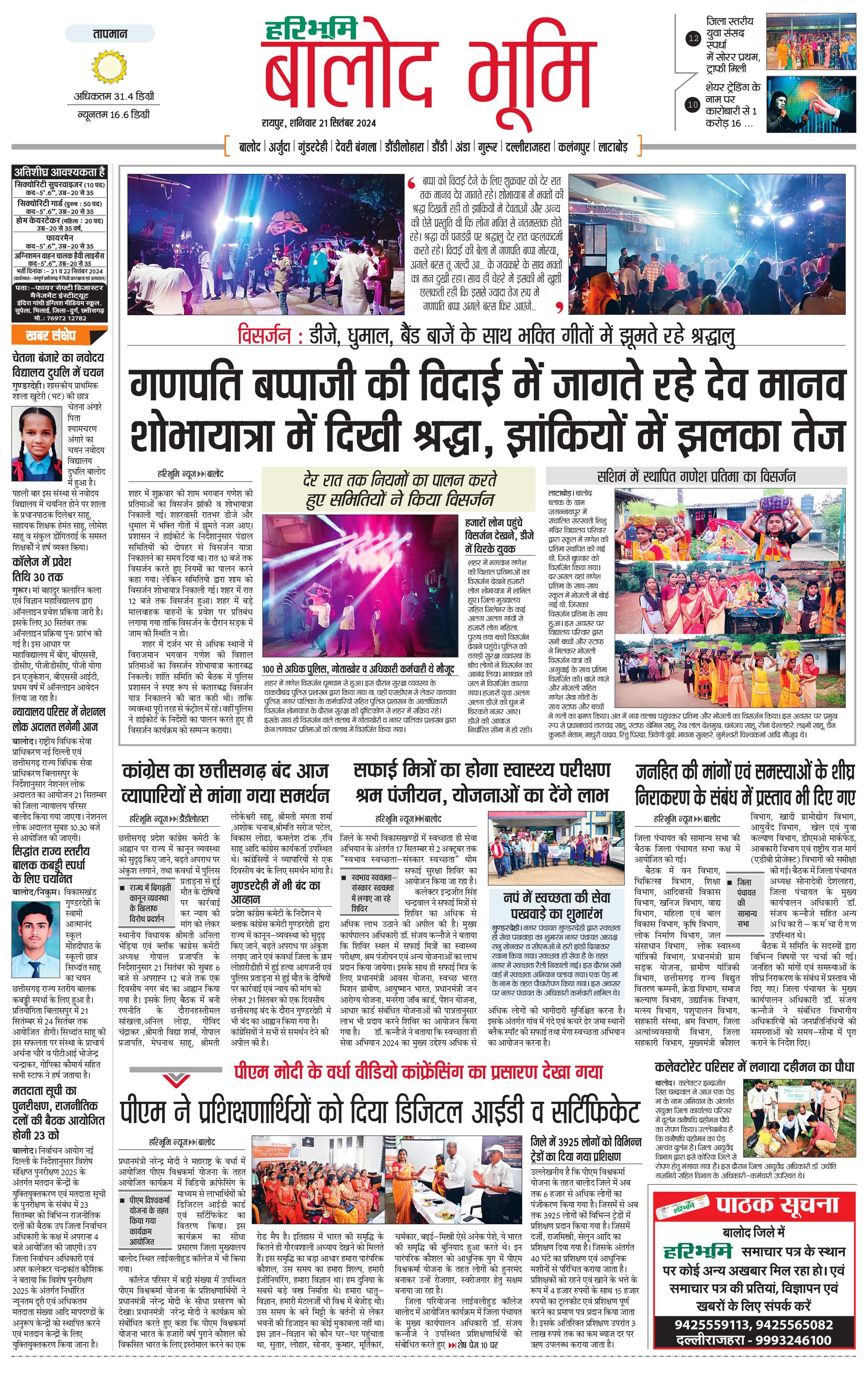 बालोद भूमि - 21 Sep 2024 - - Page 1