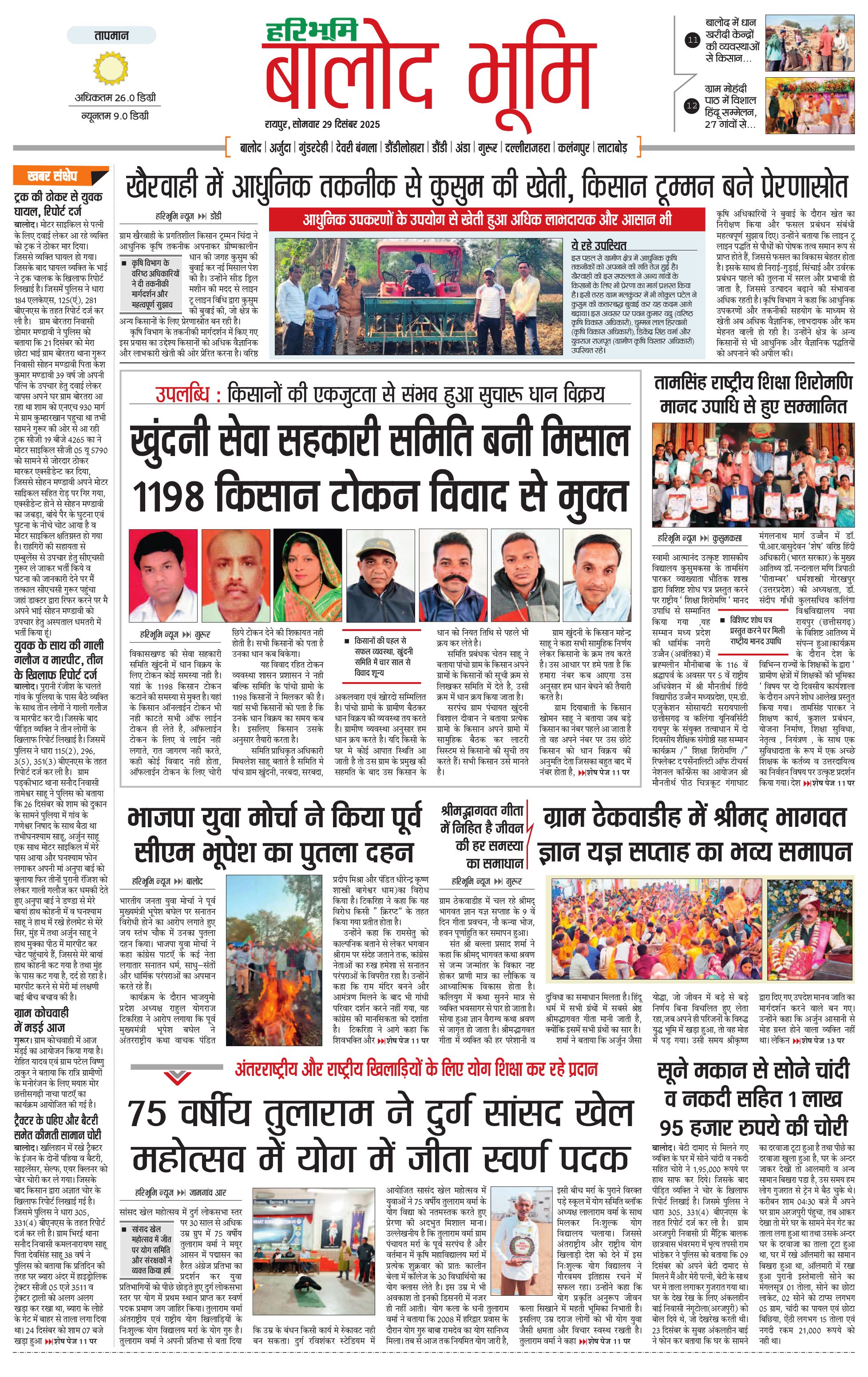 बालोद भूमि - 29 Dec 2025 - - Page 1