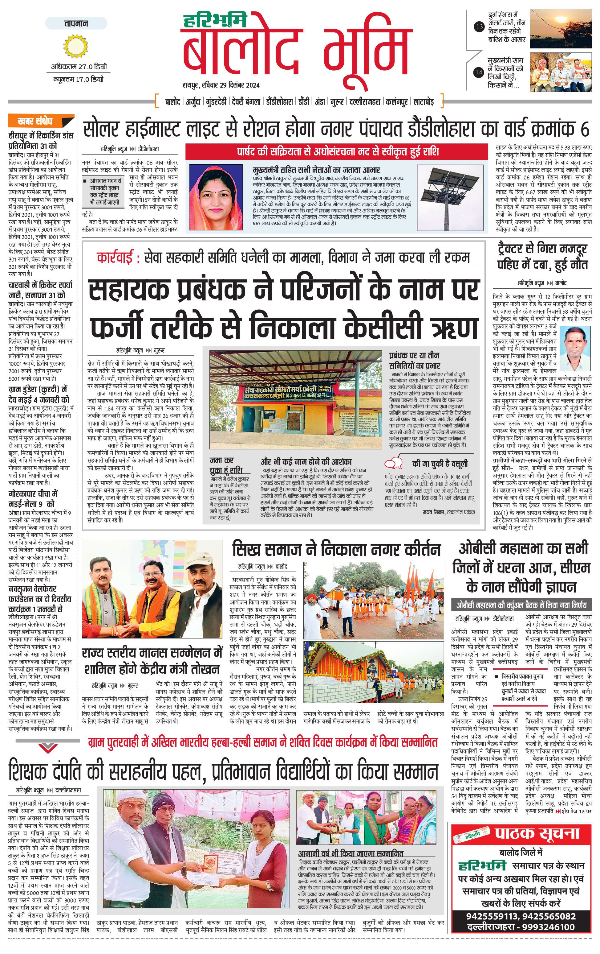बालोद भूमि - 29 Dec 2024 - - Page 1