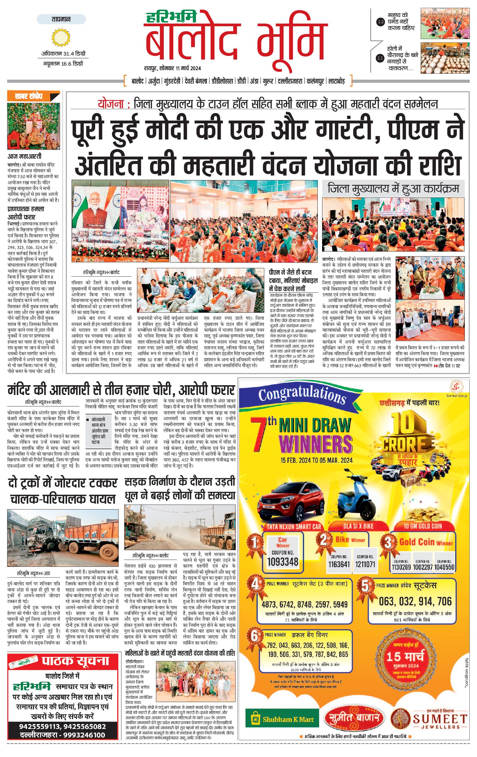 बालोद भूमि - 11 Mar 2024 - - Page 1