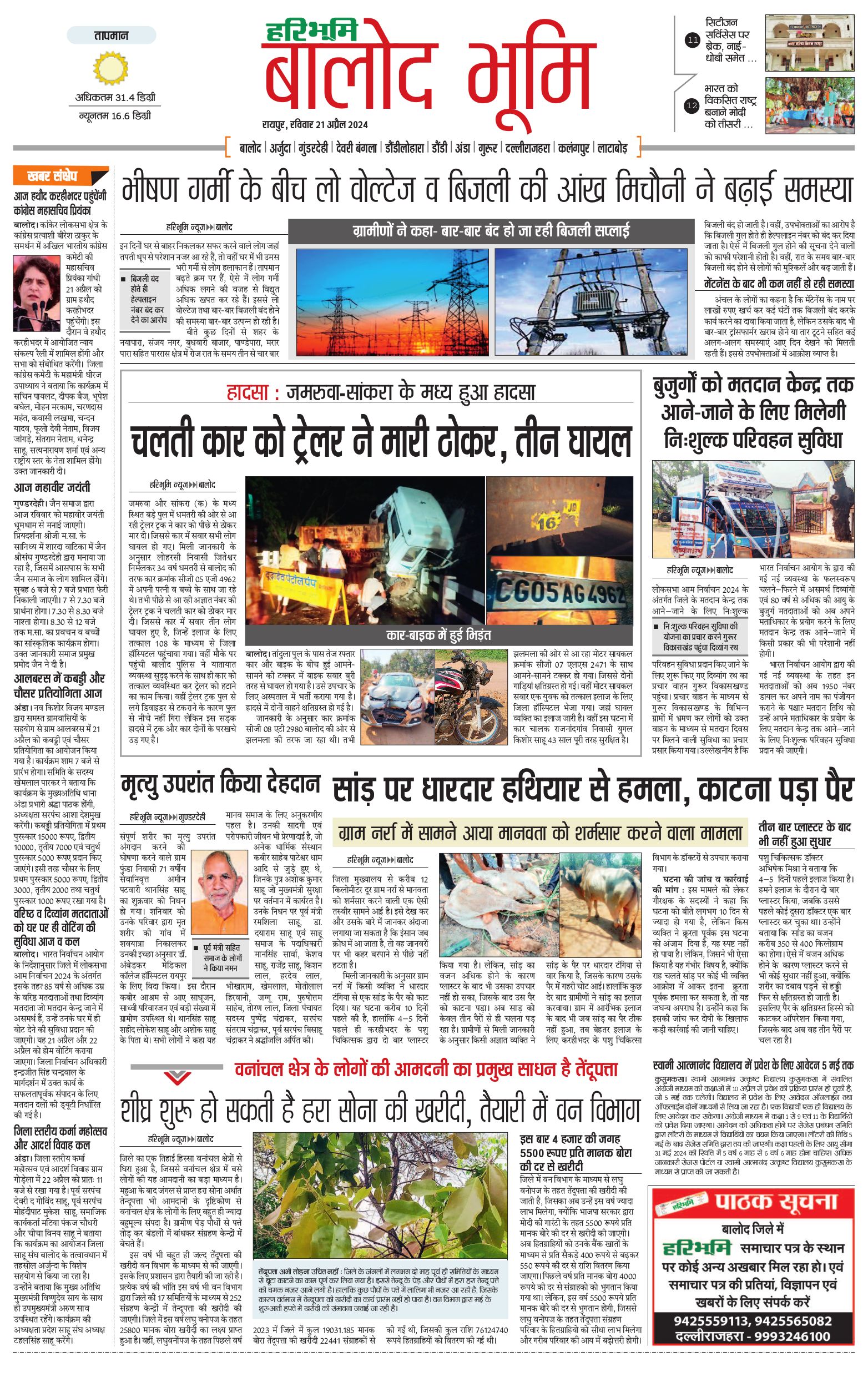 बालोद भूमि - 21 Apr 2024 - - Page 1